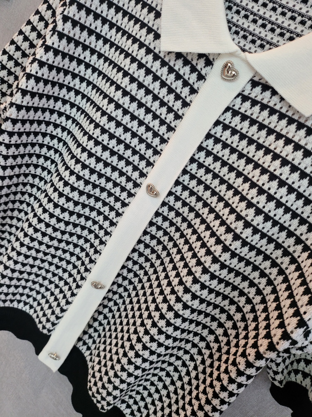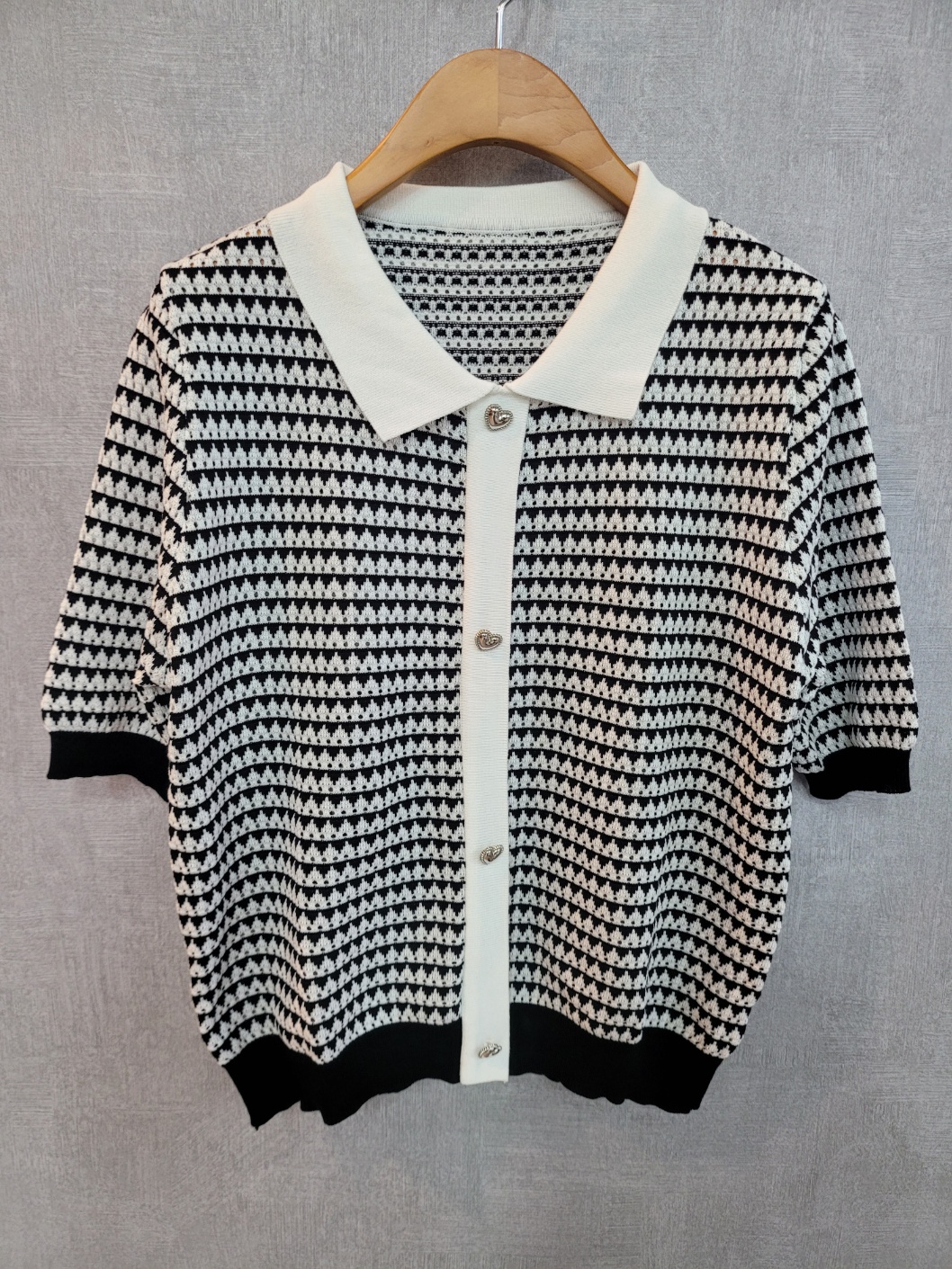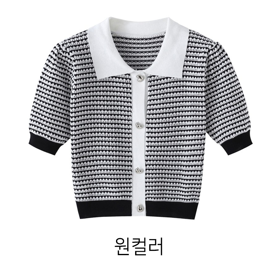 171255 [당일발송]★토요특가 자정마감 50%★실버 하트 패턴 카라 반팔 니트 33980