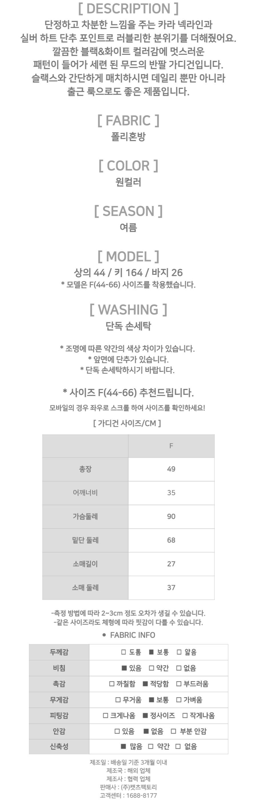 - 착용 전 세탁한 경우도 처리 불가하므로, 불량, 사이즈 오류등 이상 여부 확인 후 세탁하시기 바랍니다.