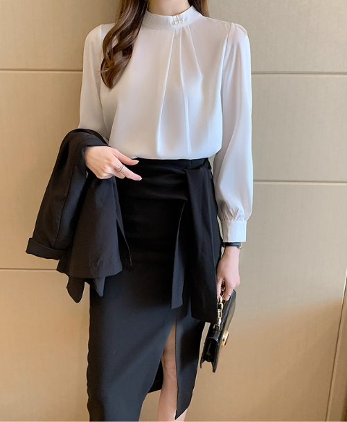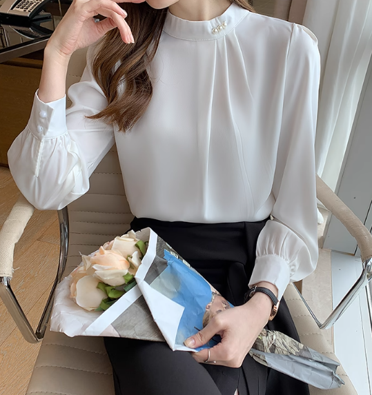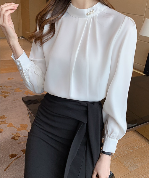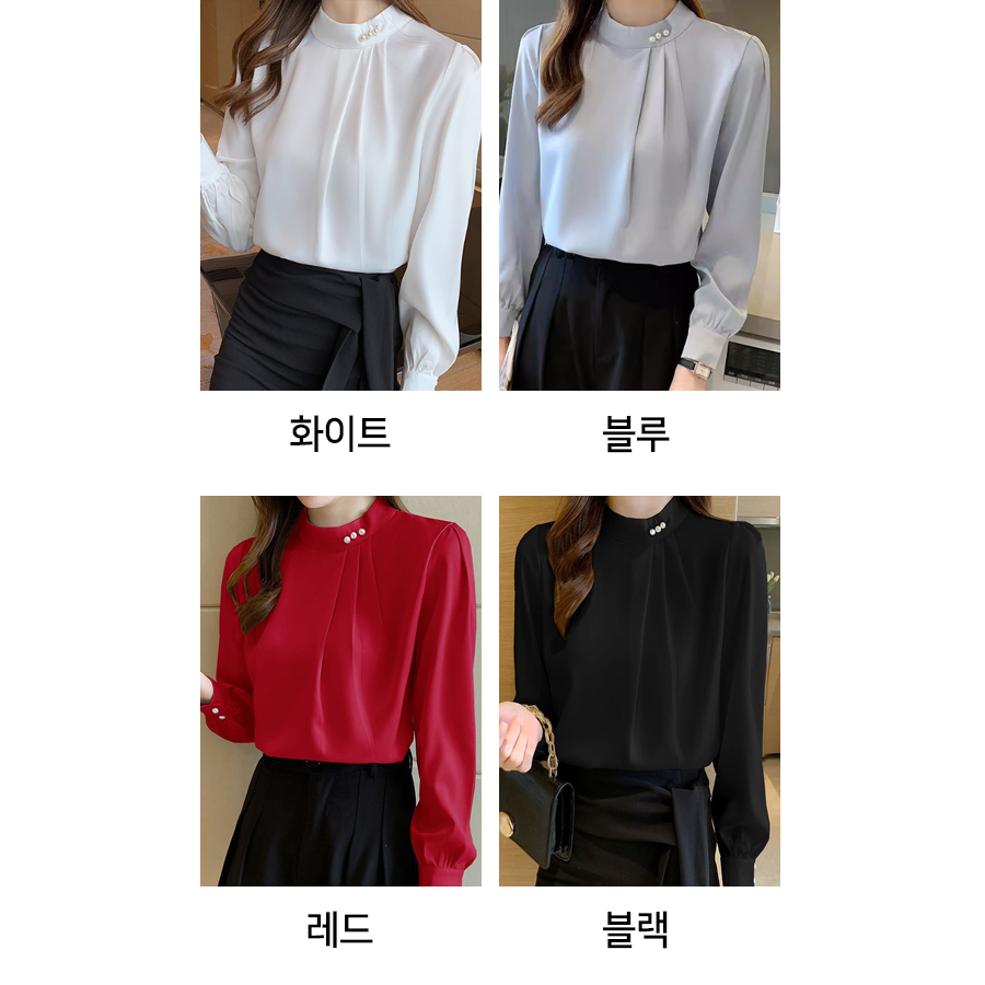 ◈[당일발송] 하이넥 셔링 디테일 블라우스