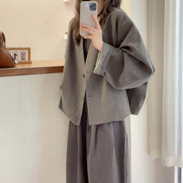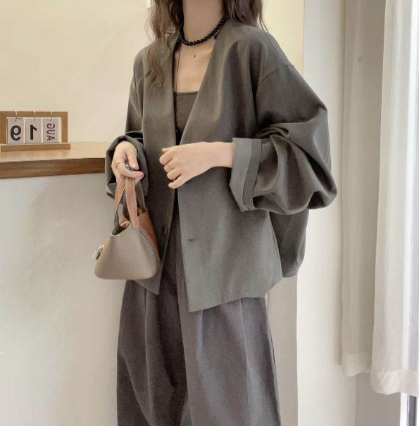 투버튼 루즈핏 그레이 자켓