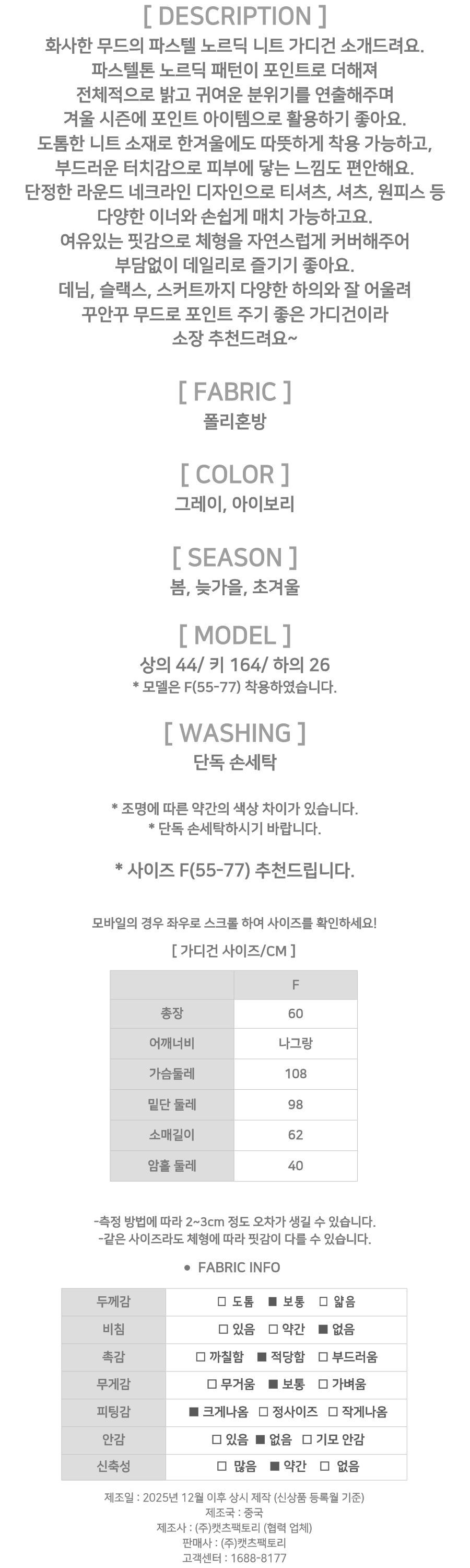 - 상품의 색상은 사용하시는 모니터 사양에 따라 실제 색상과 다소 차이가 있을 수 있으며, 이는 불량의 사유가 되지 않습니다.