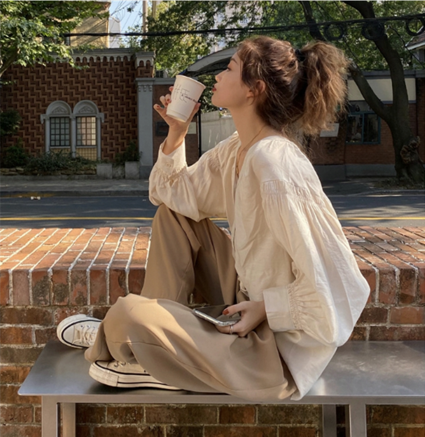 161255 [당일발송]브이넥 어깨 밴딩 루즈핏 블라우스 28080