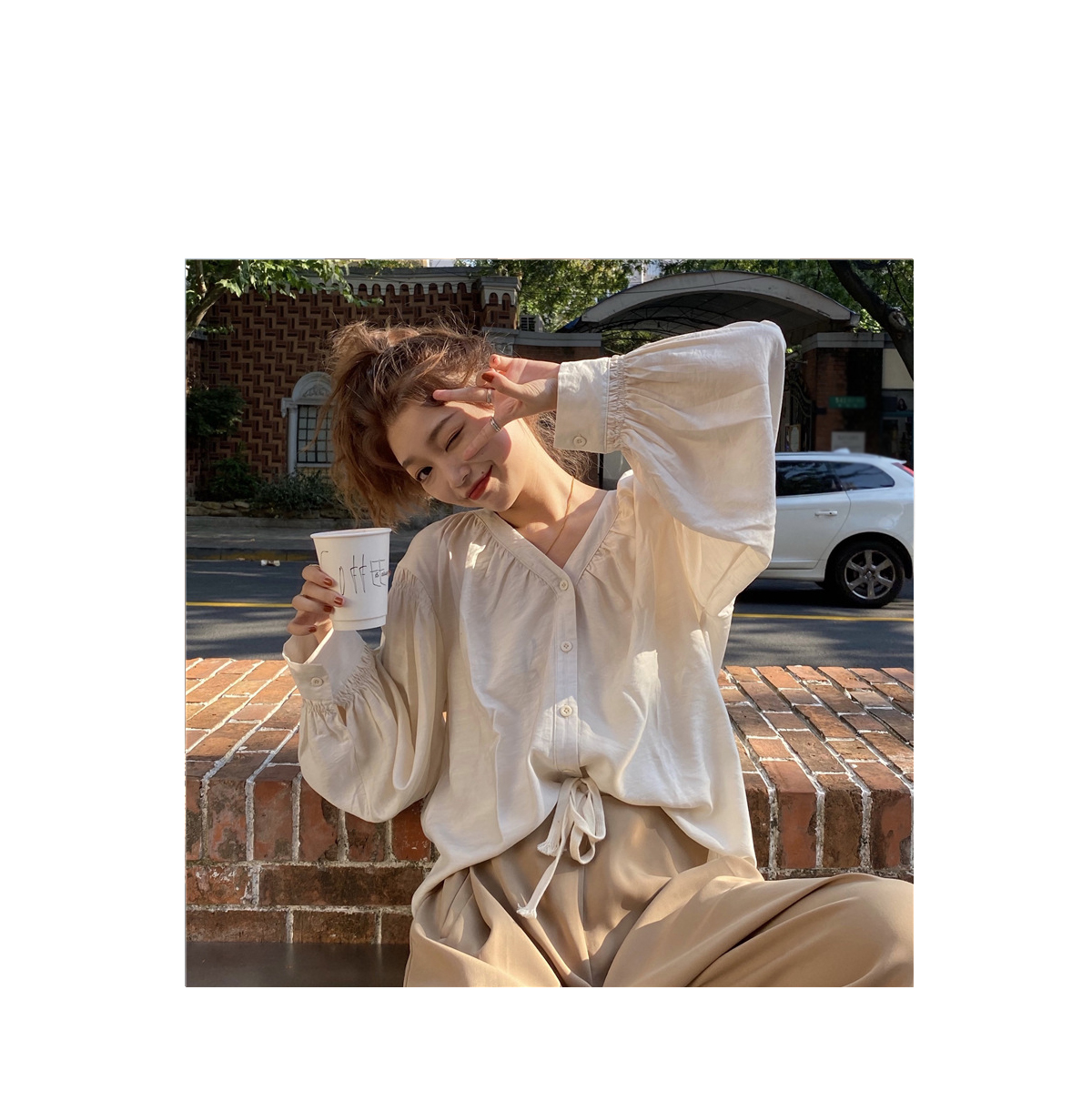[당일발송]브이넥 어깨 밴딩 루즈핏 블라우스