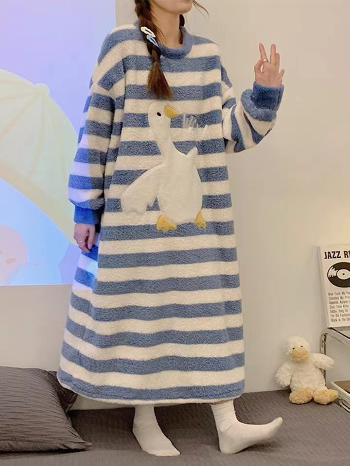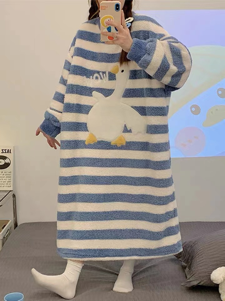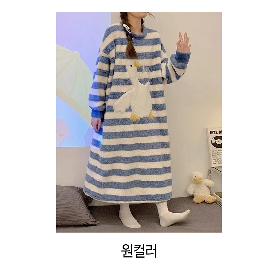 176120 ◈[당일발송] 화이트덕 줄무늬 극세사 원피스 파자마 19990