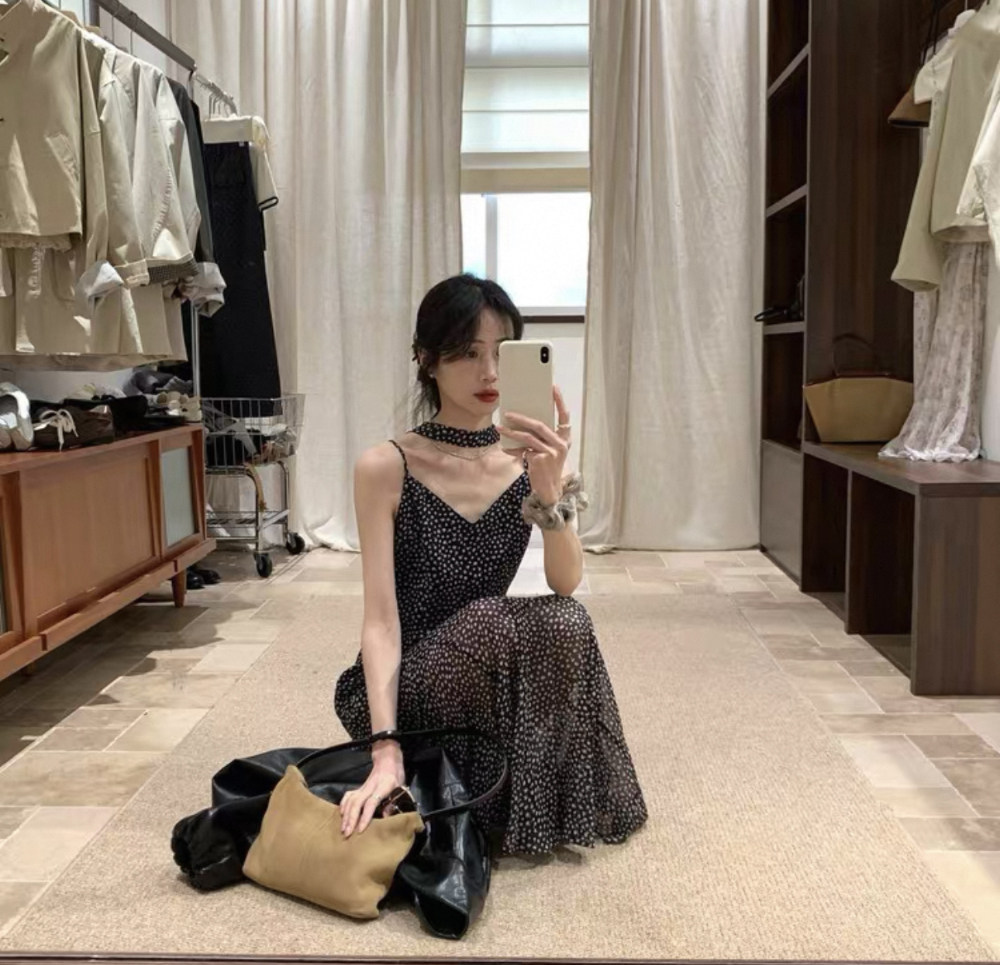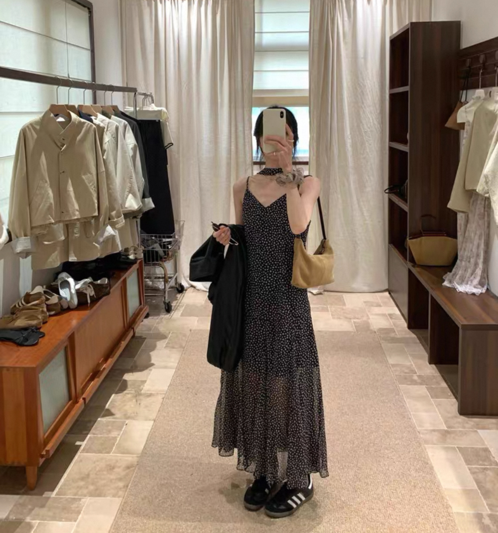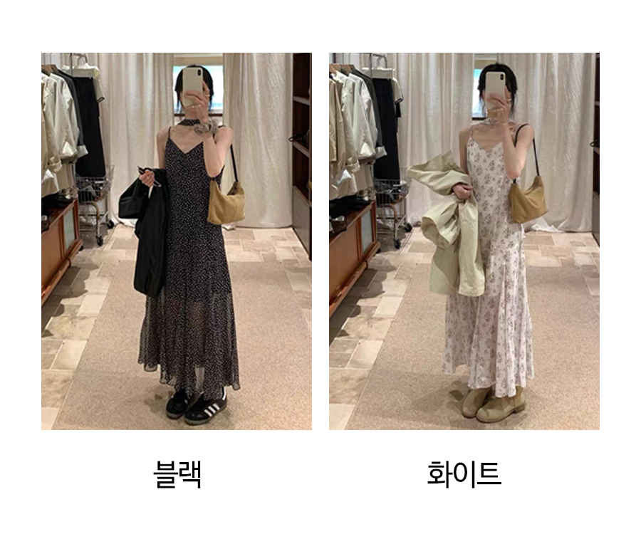 ◈[당일발송] 스카프 세트 패턴 플레어 슬립 원피스