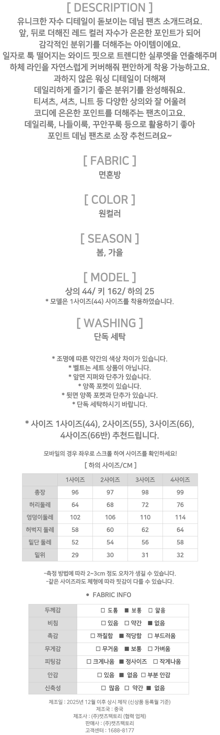 182223 레드 자수 포인트 와이드 데님 29380