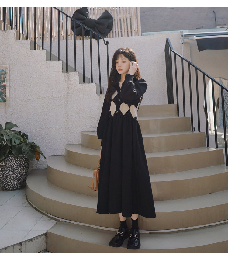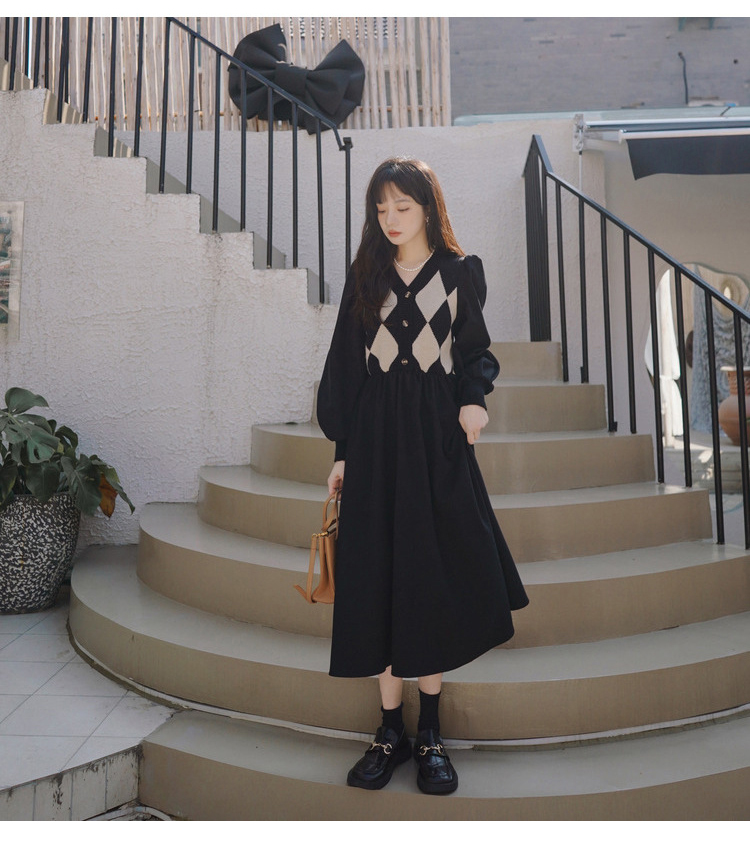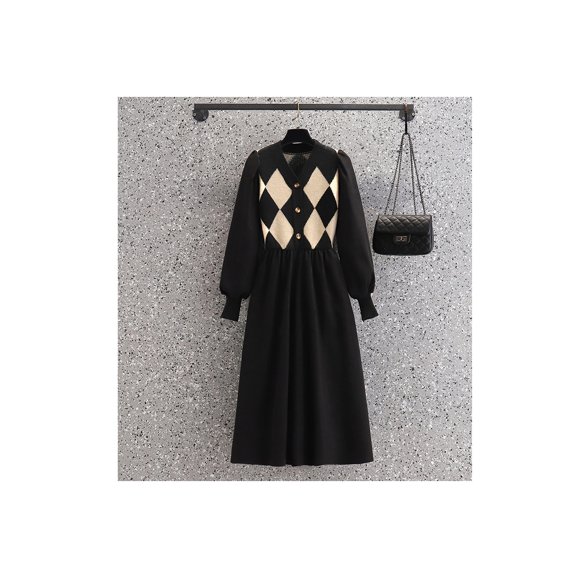 162585 브이넥 버튼 아가일 패턴 원피스 59990