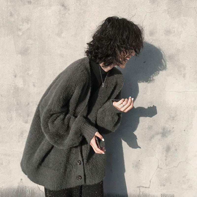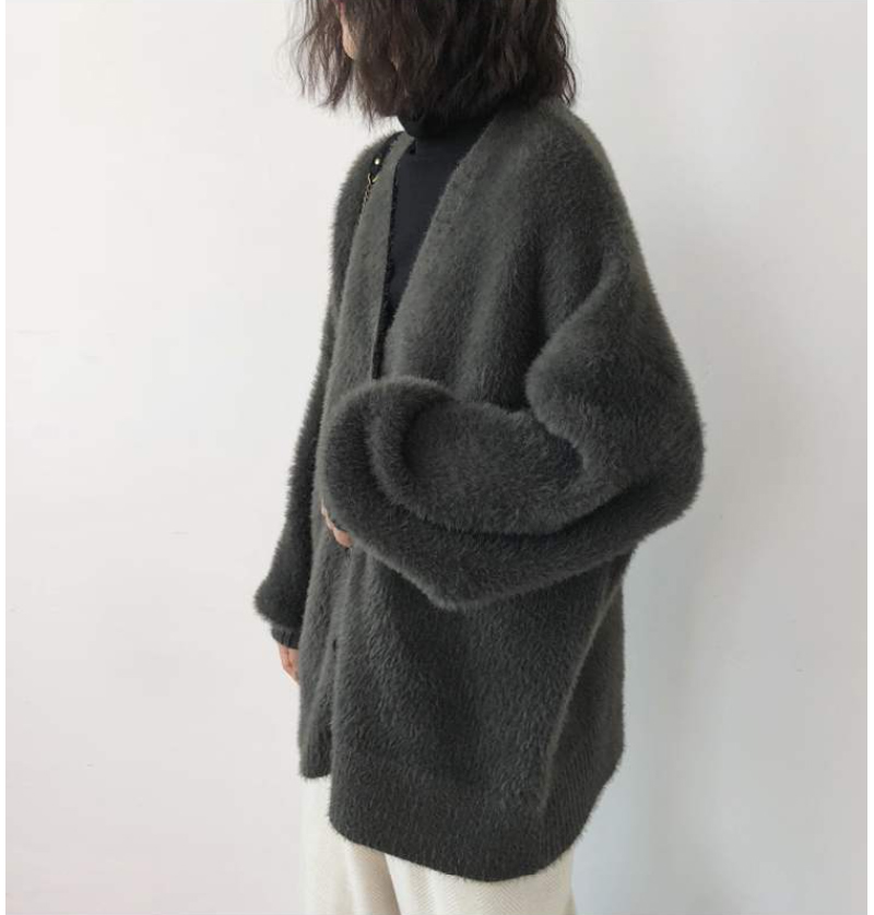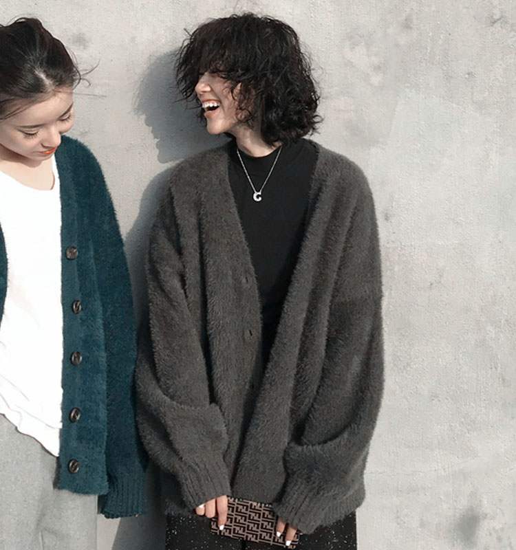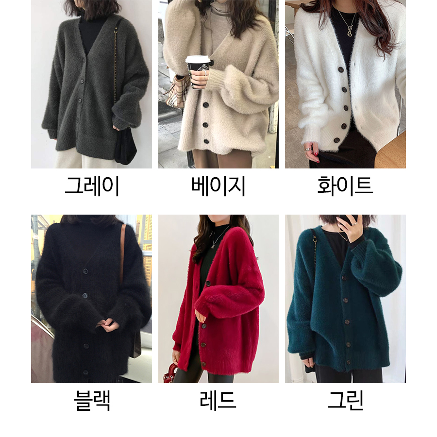 브이넥 루즈핏 퍼 가디건