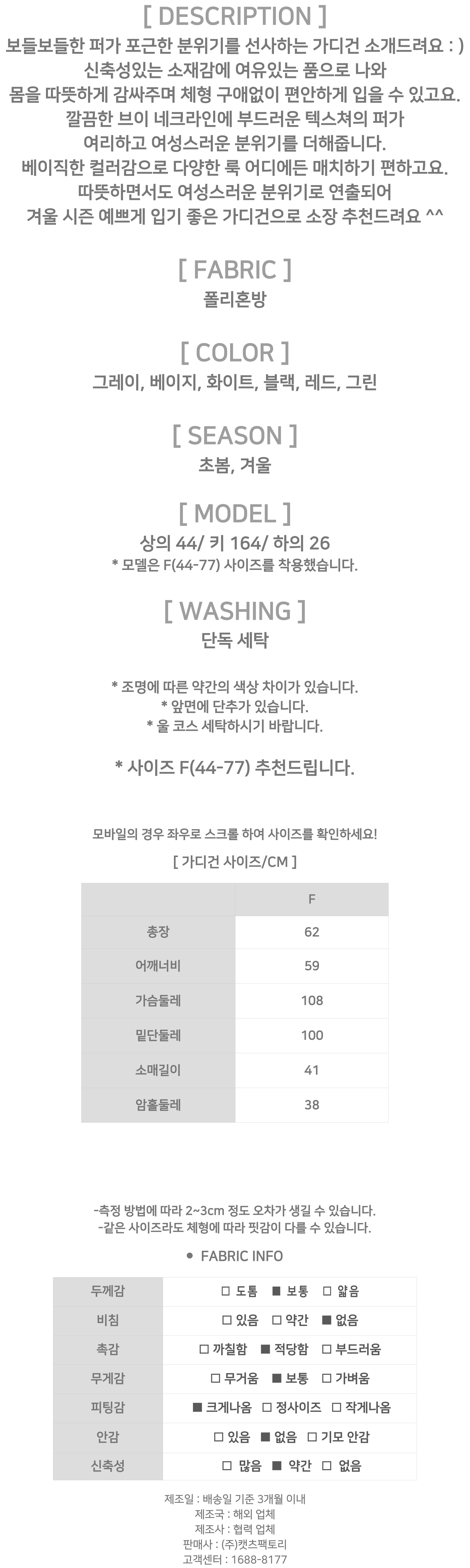- 상품의 색상은 사용하시는 모니터 사양에 따라 실제 색상과 다소 차이가 있을 수 있으며, 이는 불량의 사유가 되지 않습니다.