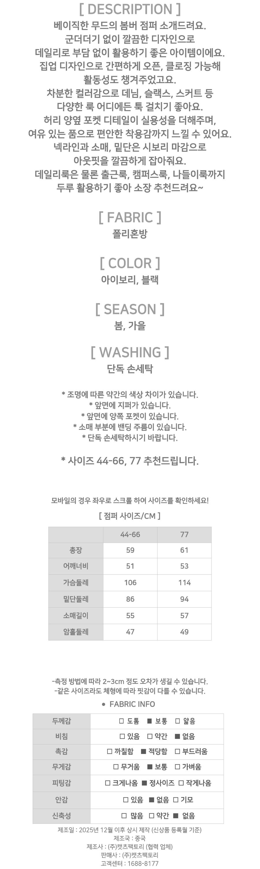 182027 데일리 베이직 봄버 점퍼 30580