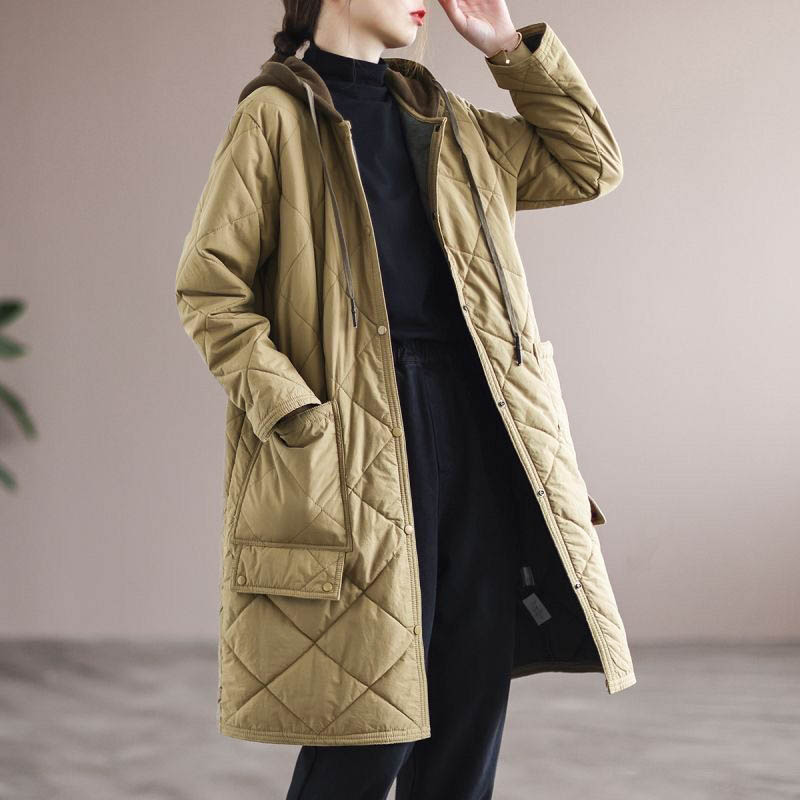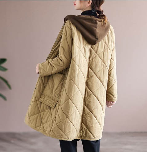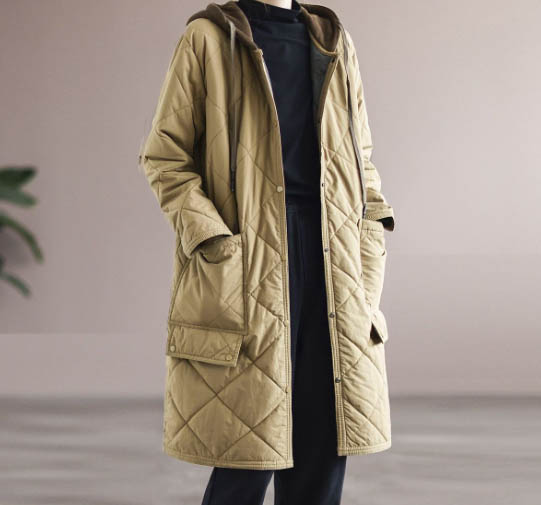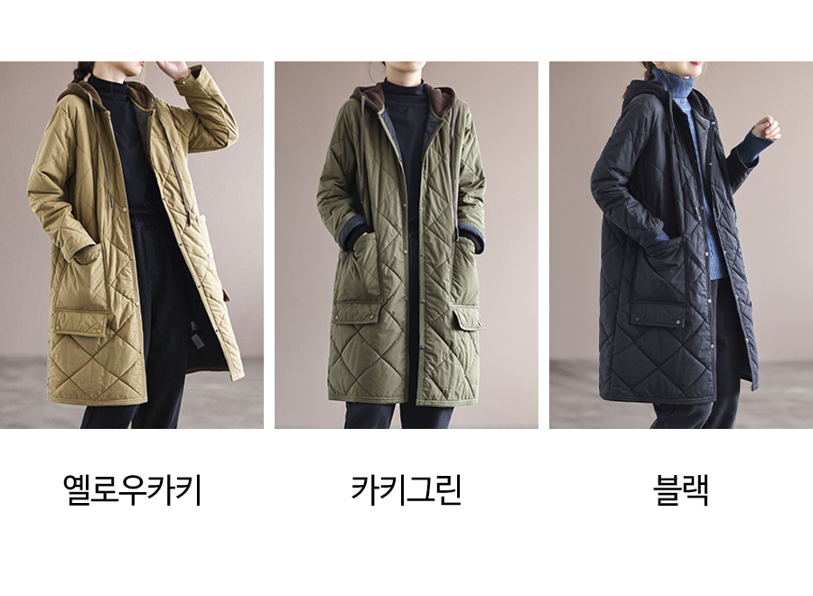 웰론 누빔 후드 롱 점퍼