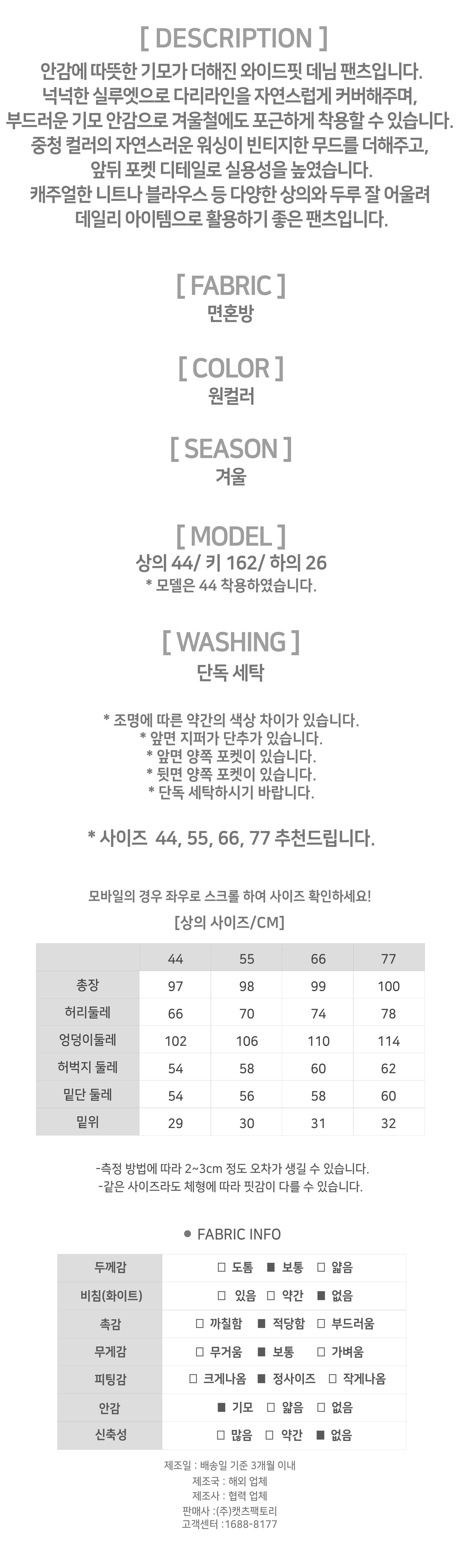 180798 ◈[당일발송] 기모 와이드 데님 팬츠 39980