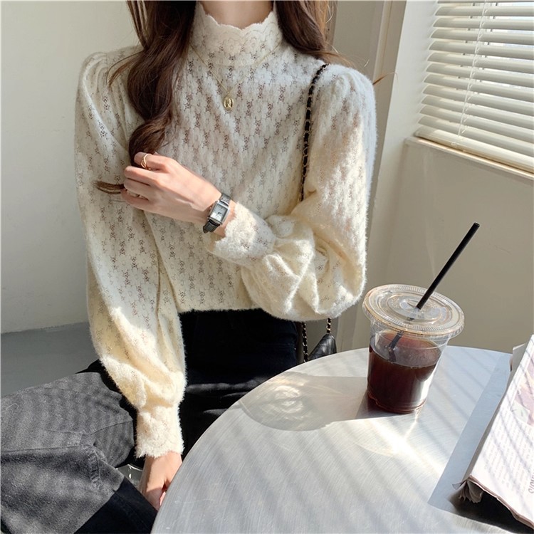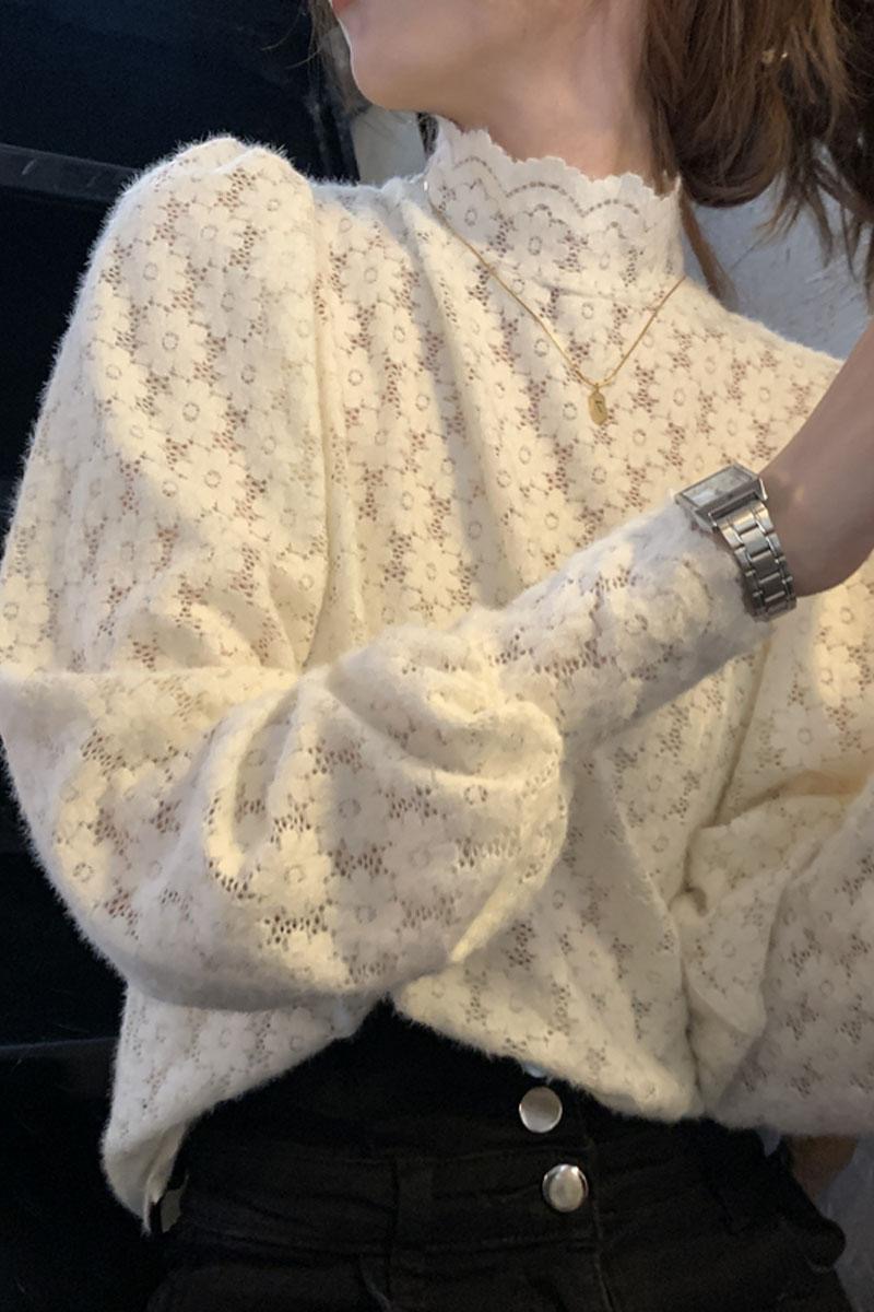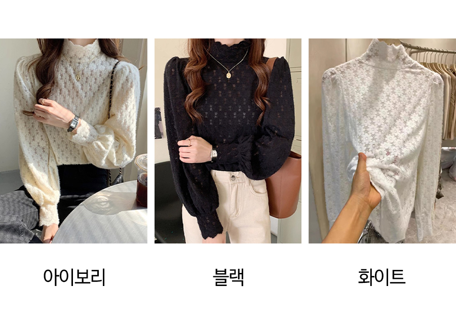 펀칭 시스루 폴라 블라우스