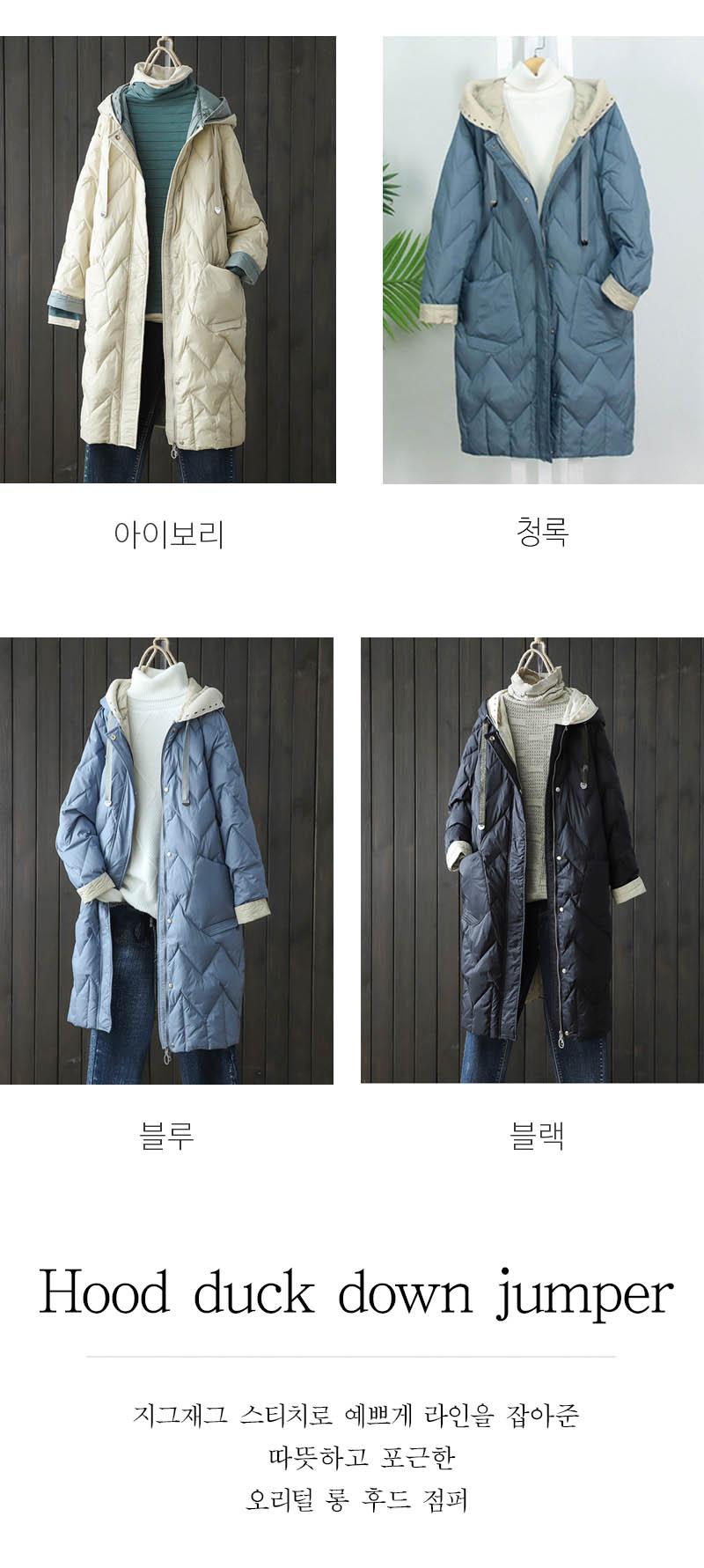 [당일발송]★수요특가 자정마감 50%★지그재그 니트 후드 덕다운 롱 패딩[블루컬러 청록색으로 발송되세요~]