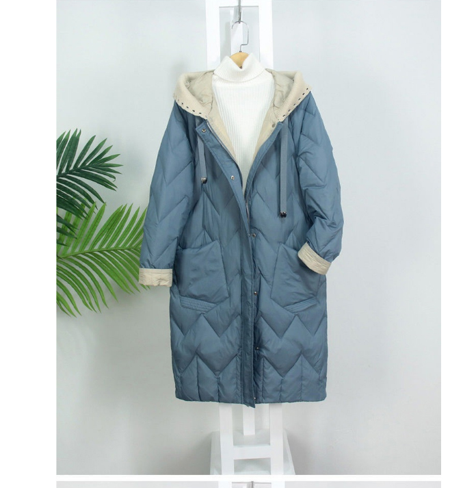 [당일발송]★금요특가 자정마감 50%★지그재그 니트 후드 덕다운 롱 패딩[블루컬러 청록색으로 발송되세요~]
