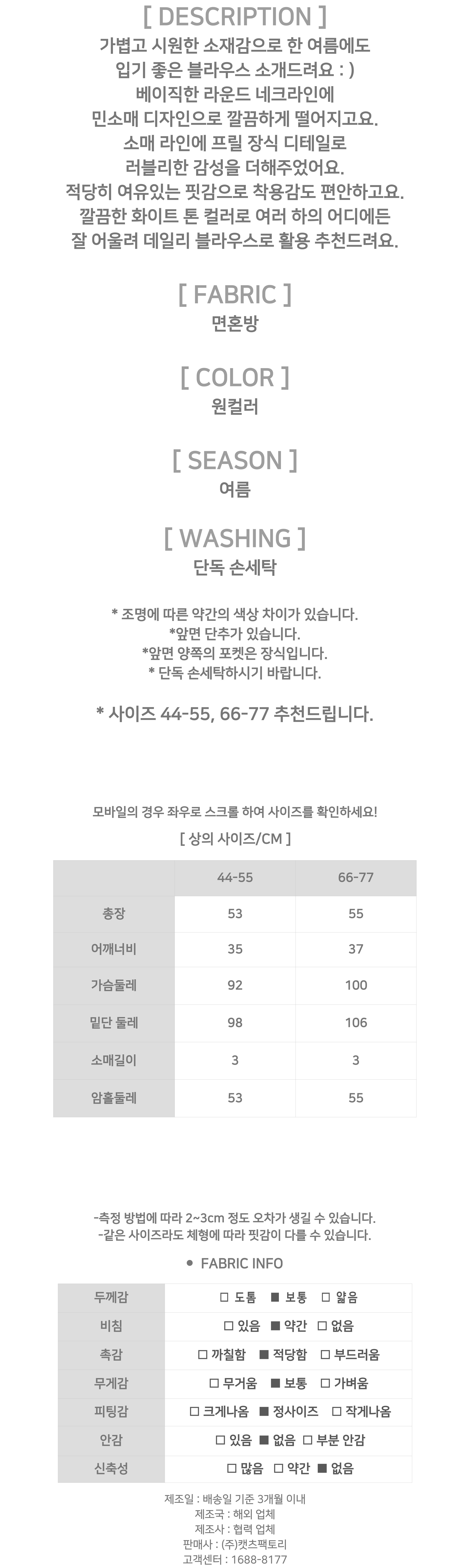 - 교환, 반품 요청기간 7일 경과 후 접수하시는 경우 - 착용 및 세탁, 다리미질, (스팀다리미 포함)한 상품, 화장품, 향수등의 냄새가 배거나 이물질이 뭍은 상품은 불가 - 착용 전 세탁한 경우도 처리 불가하므로, 불량, 사이즈 오류등 이상 여부 확인 후 세탁하시기 바랍니다. - 고의로 상품을 훼손한 경우 (과실 여부를 가리기 위해 관련기관에 상품 접수 후 민원처리 결과에 따라 처리합니다.)