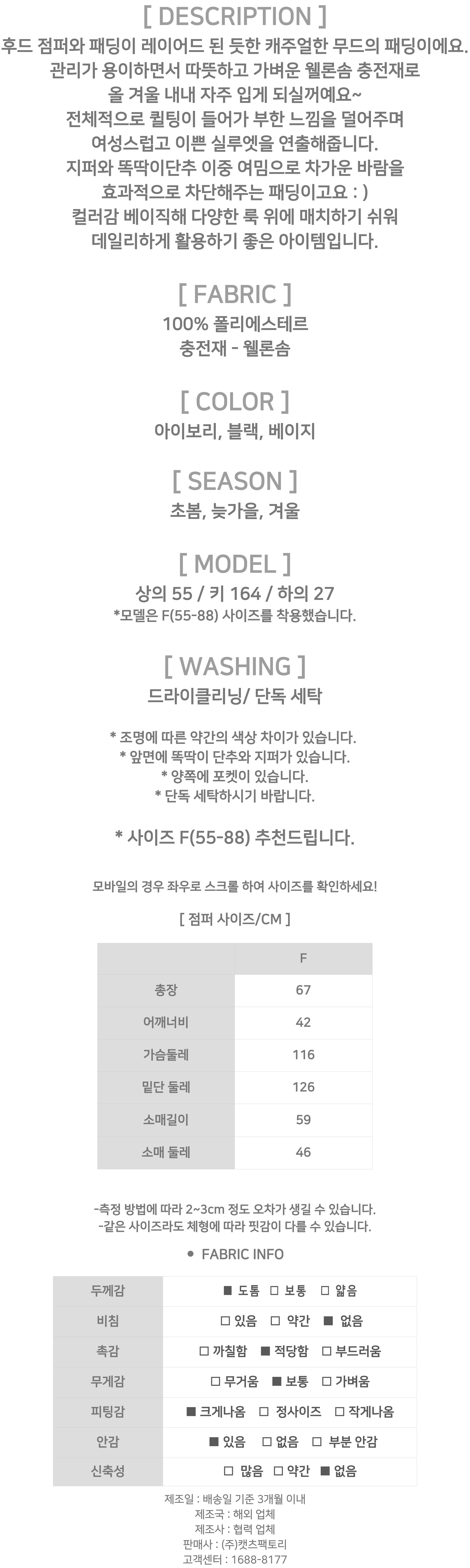 172305 ★일요특가 자정마감 50%★니팅 후드 퀼팅 패딩 59980