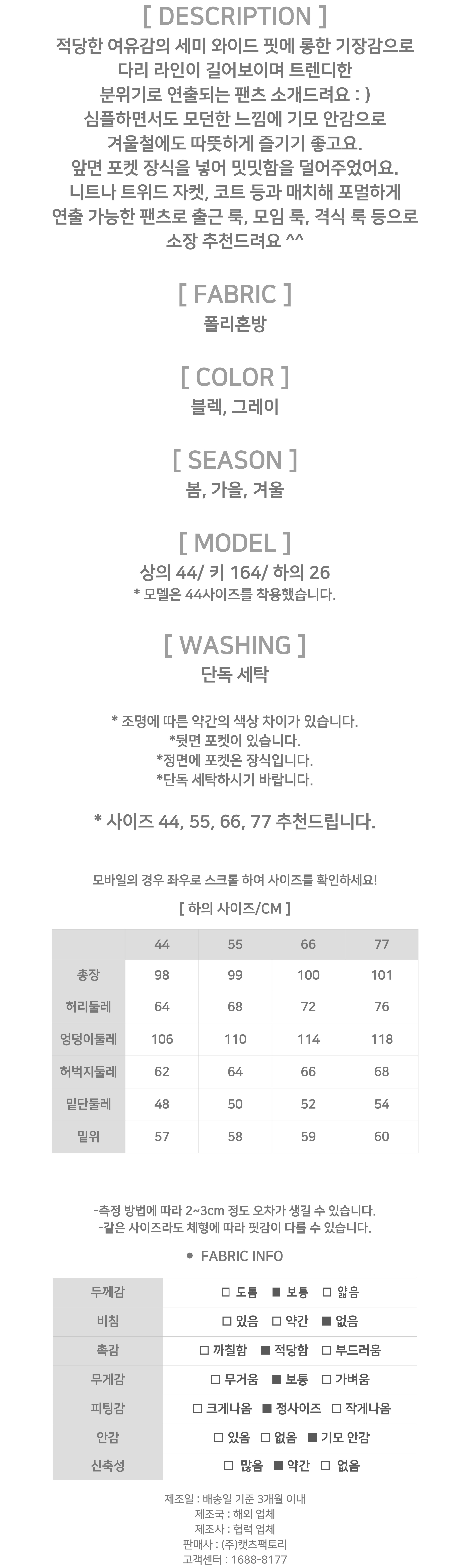 176644 ◈[당일발송] 기모 세미와이드 롱 슬랙스 25590