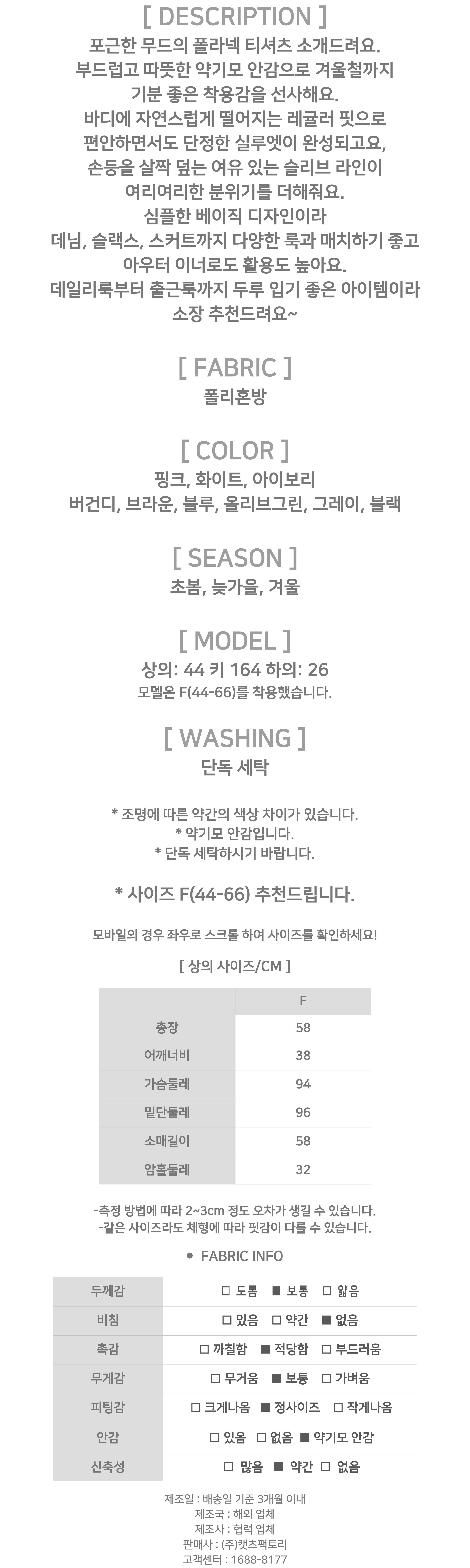 180885 ◈[당일발송] 포근 약기모 여리핏 폴라넥 티셔츠 15990