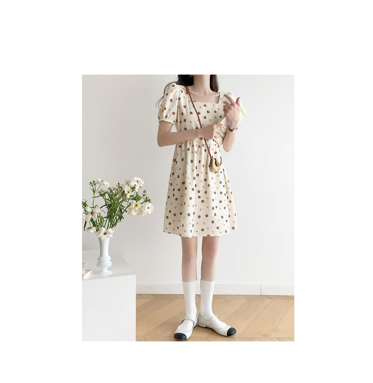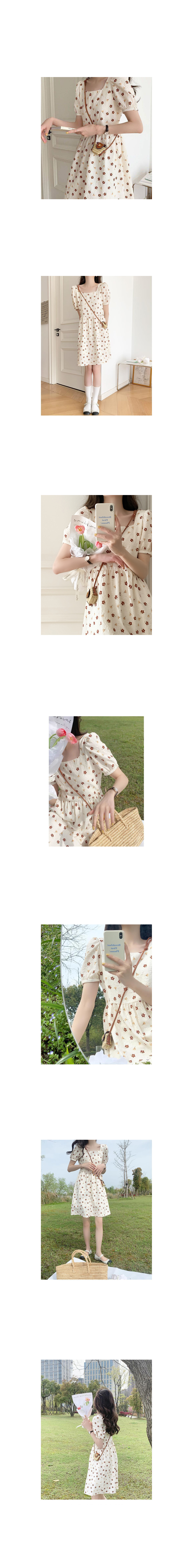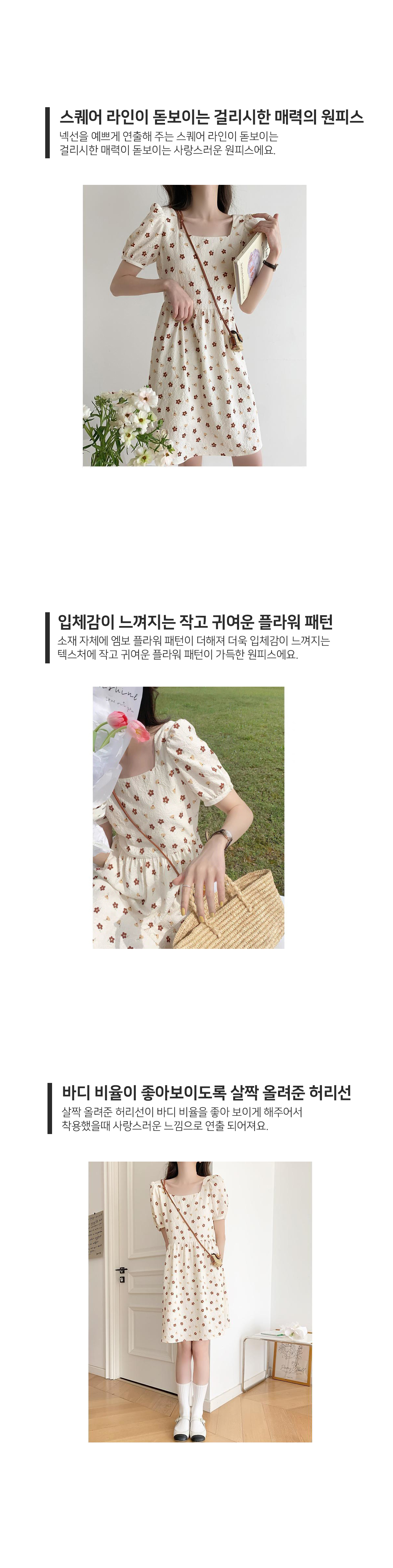 넥선을 예쁘게 연출해 주는 스퀘어 라인이 돋보이는 원피스에요.