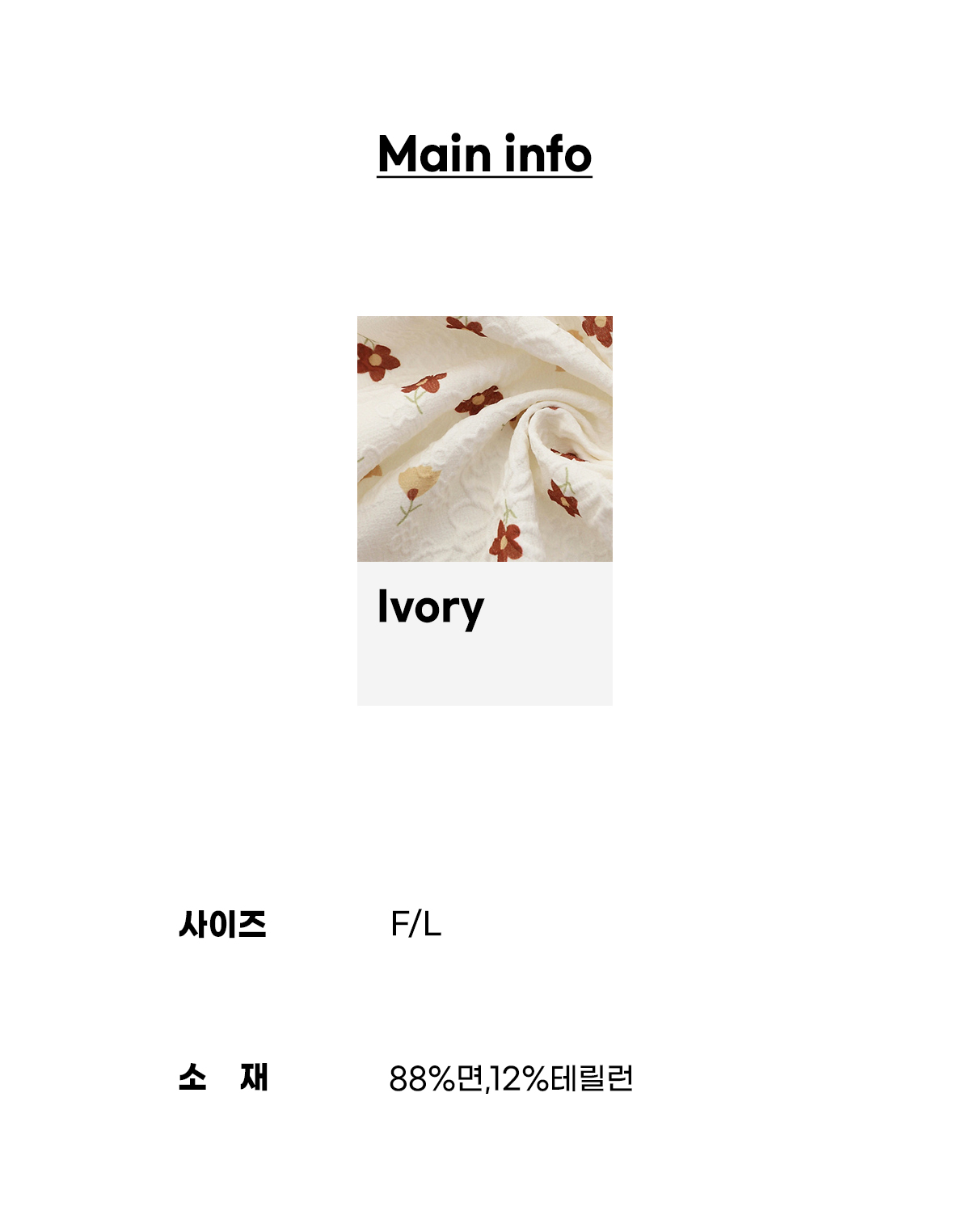 소재 자체에 엠보 플라워 패턴이 더해져 더욱 입체감이 느껴지는 텍스처에요.