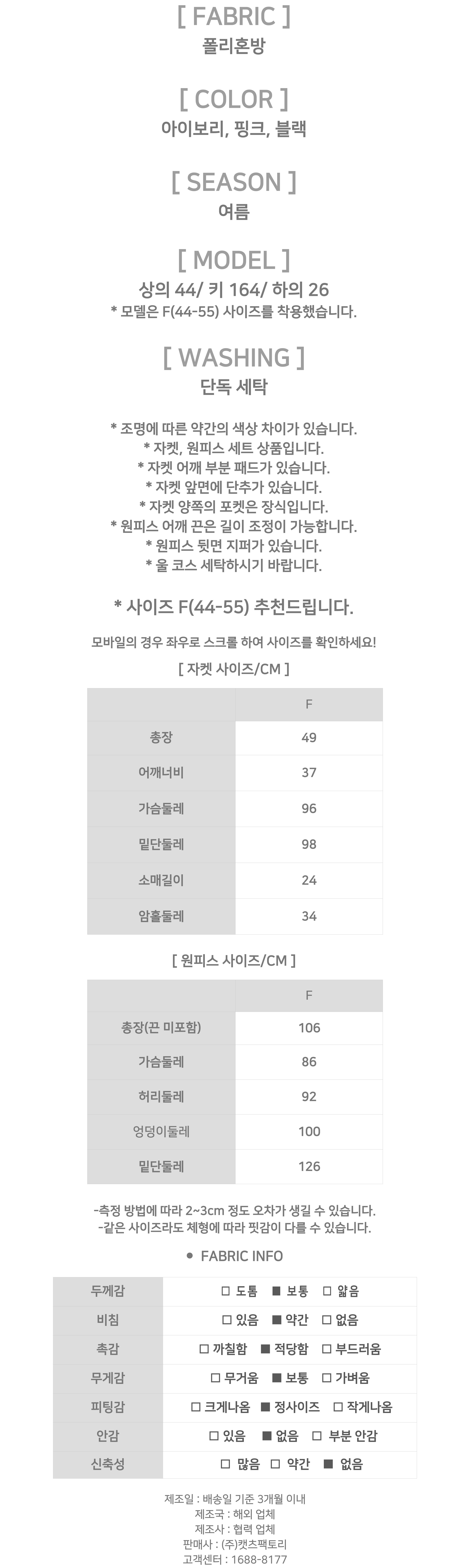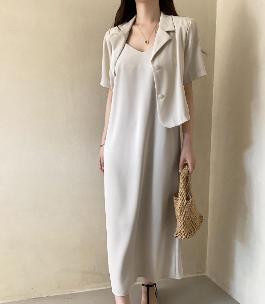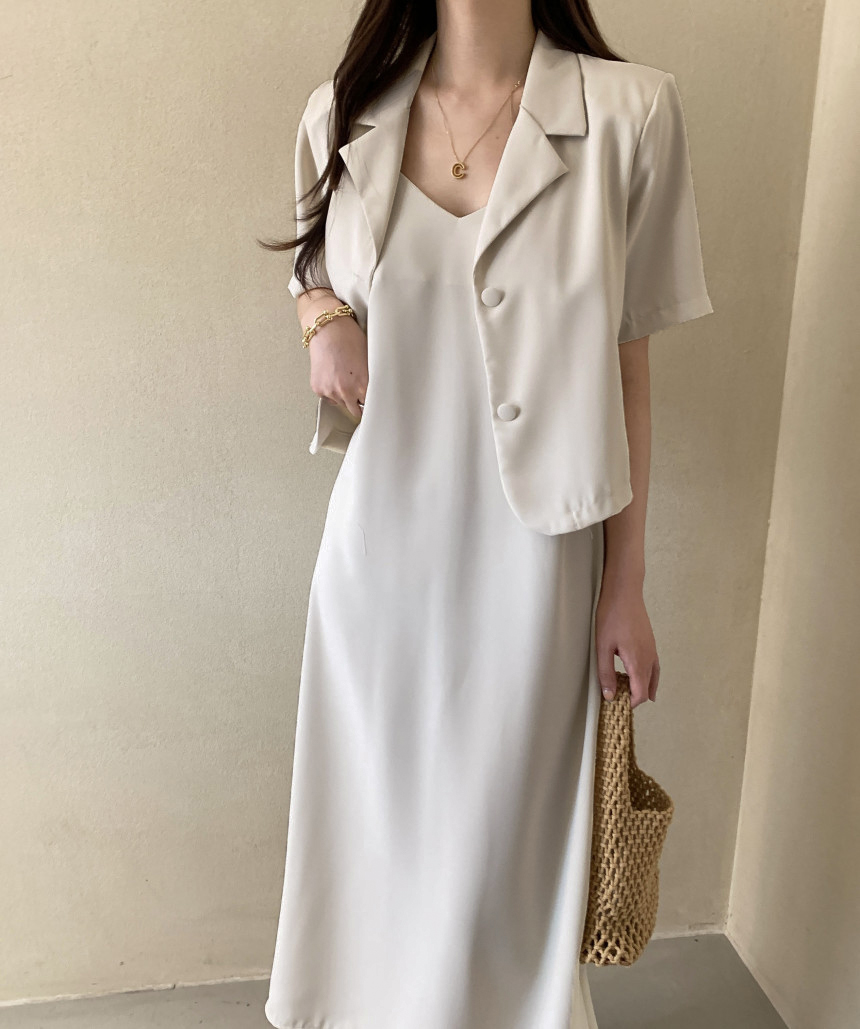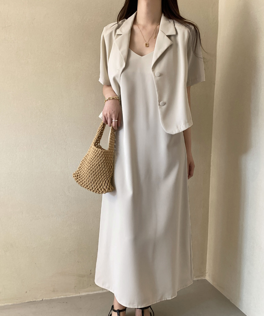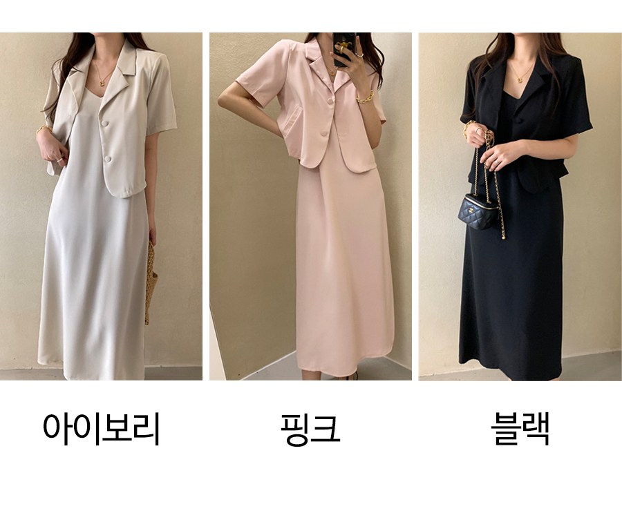 ◈[당일발송] 테일러드 반팔 자켓&브이넥 이너 나시 원피스 2SET