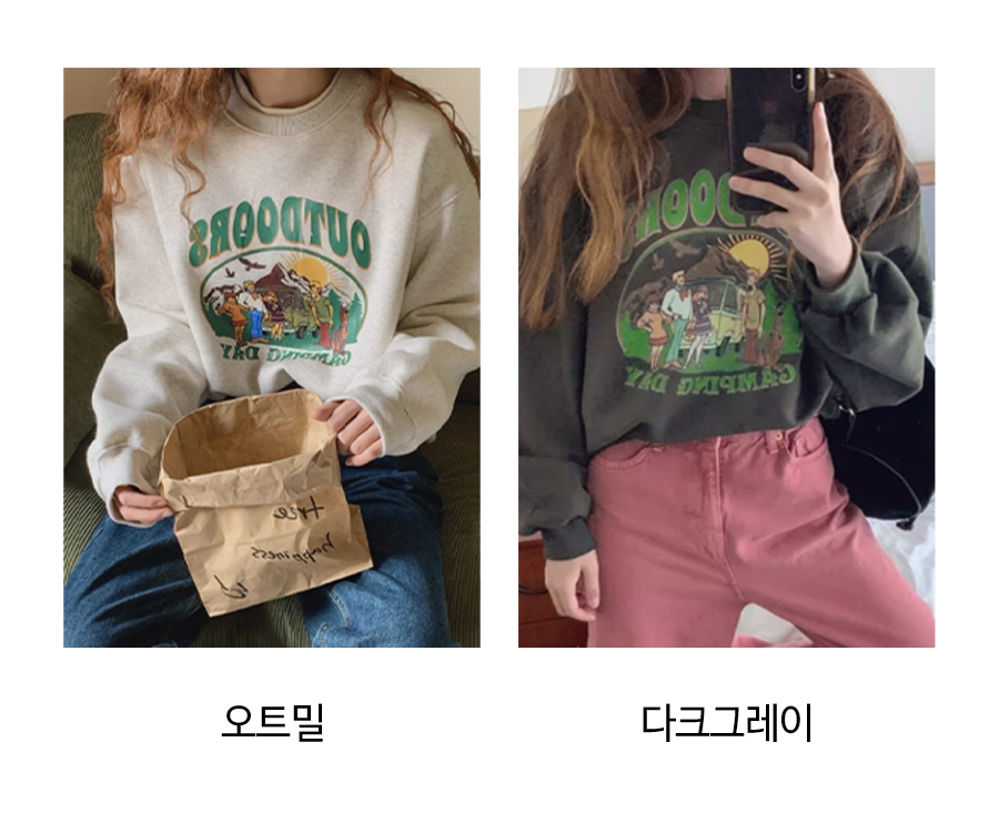 기모 아웃도어 빈티지 프린팅 맨투맨