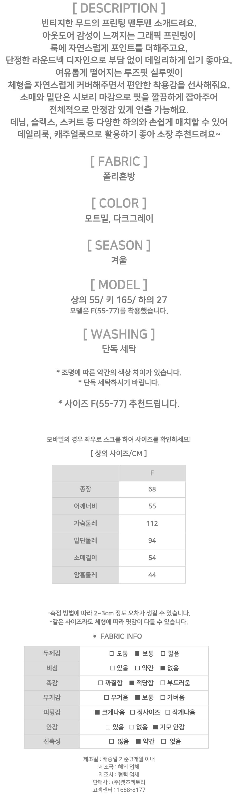181316 기모 아웃도어 빈티지 프린팅 맨투맨 19980