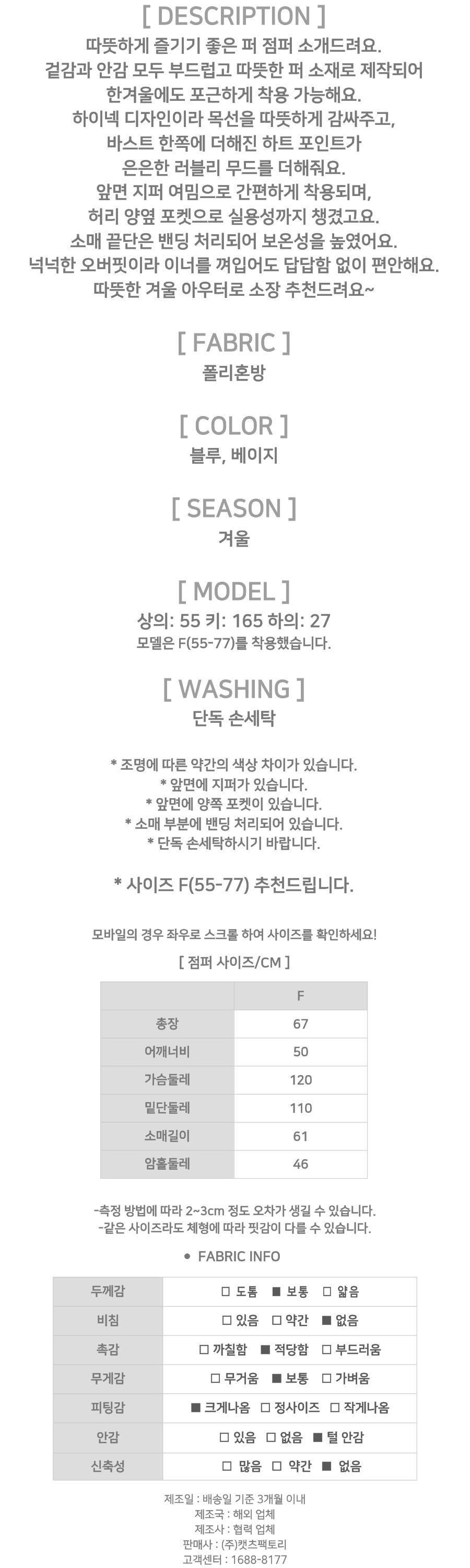 181089 포근 오버핏 하이넥 퍼 점퍼 23480