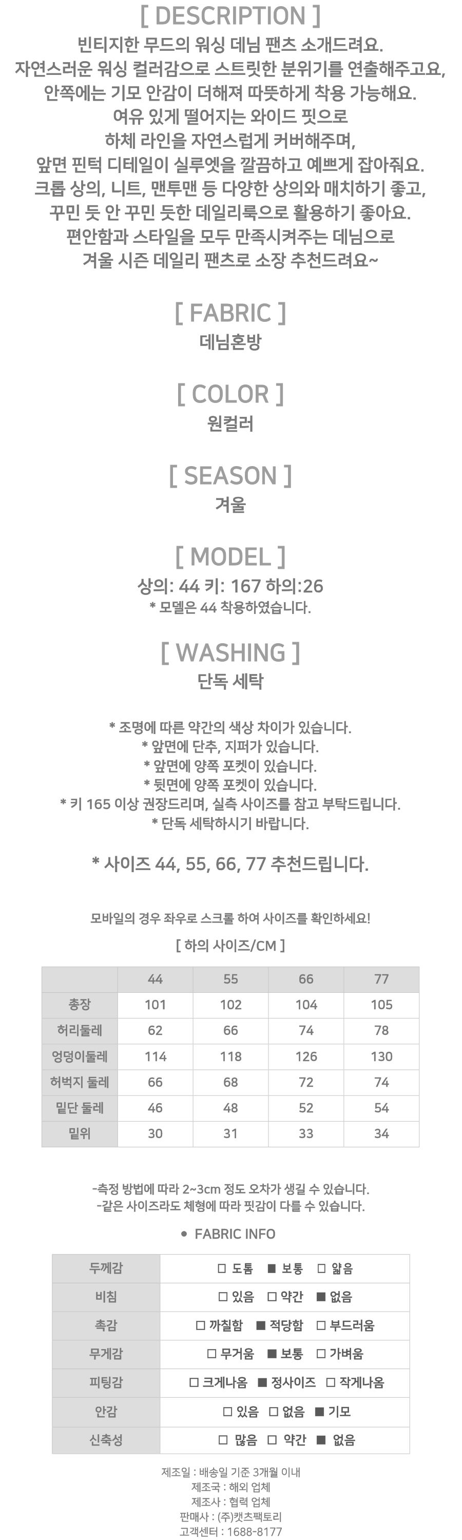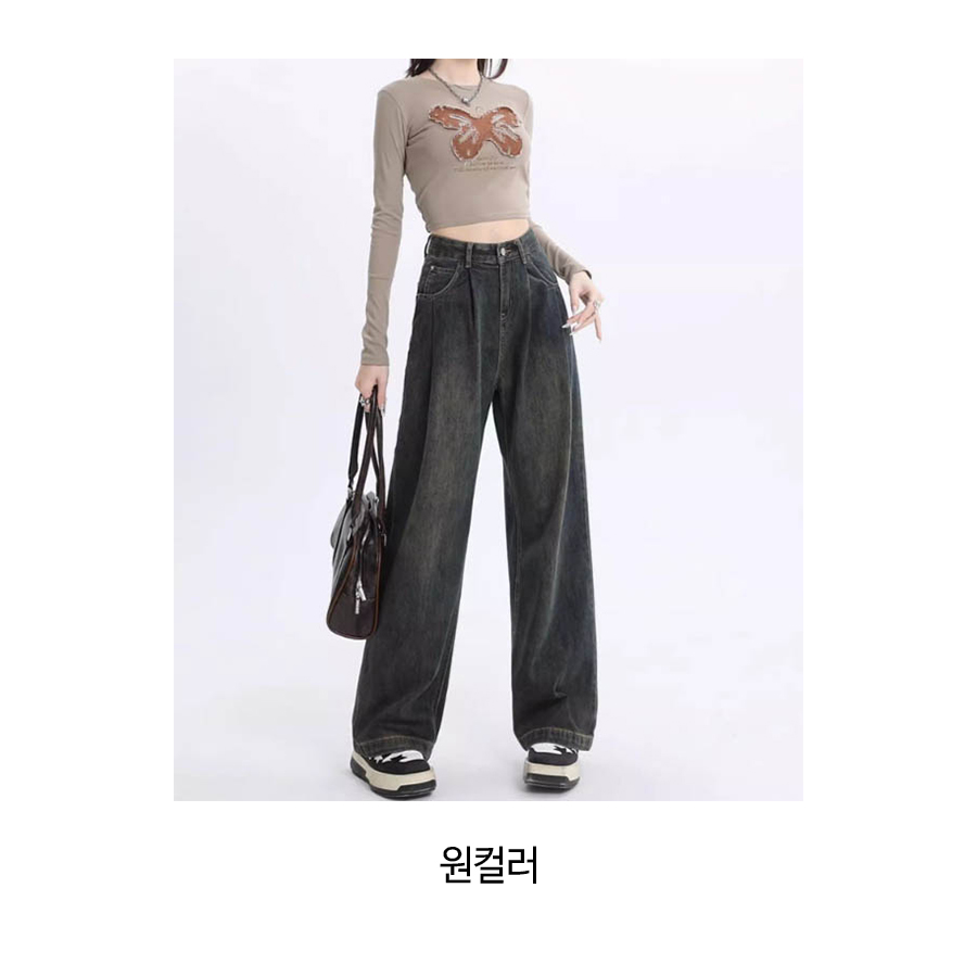 181390 빈티지 워싱 기모 와이드 데님 30580