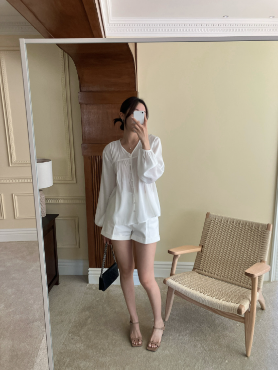 180469 ◈[당일발송] 여유핏 핀턱 볼륨 소매 블라우스 29990