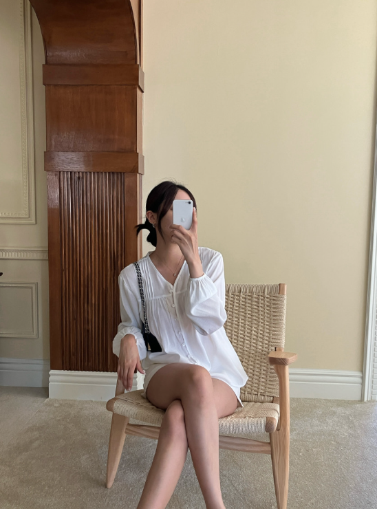 ◈[당일발송] 여유핏 핀턱 볼륨 소매 블라우스