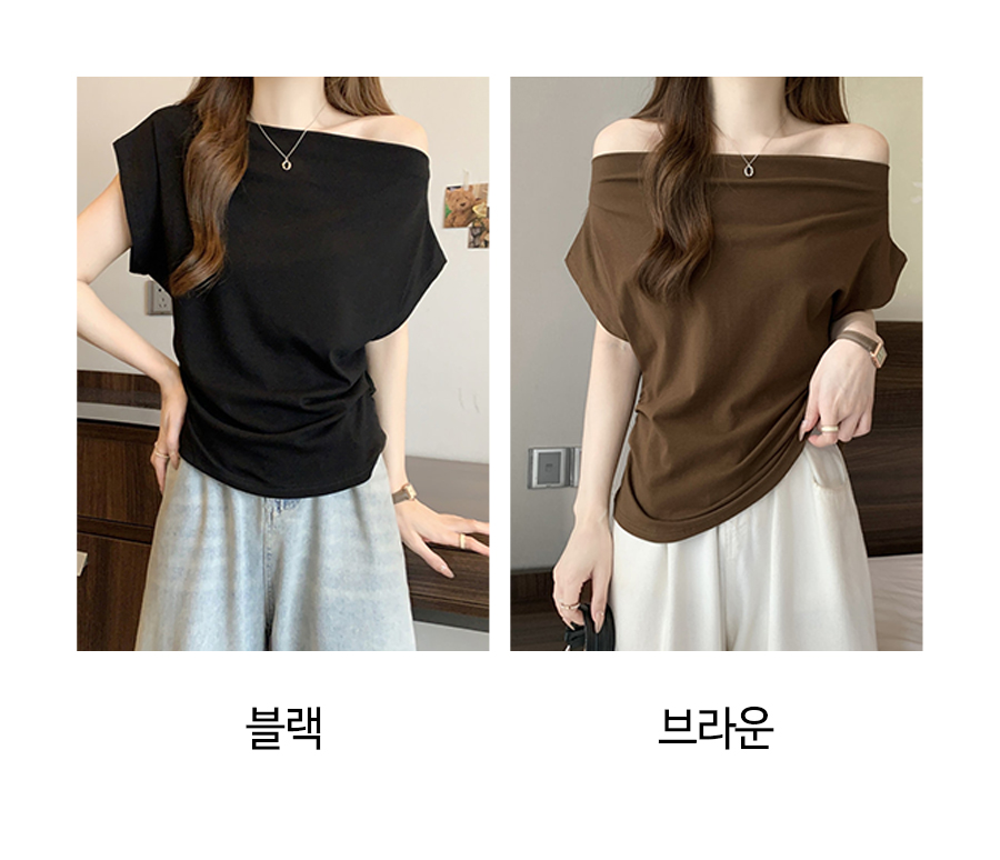 ◈[당일발송] 옆셔링 슬림핏 오프숄더 블라우스
