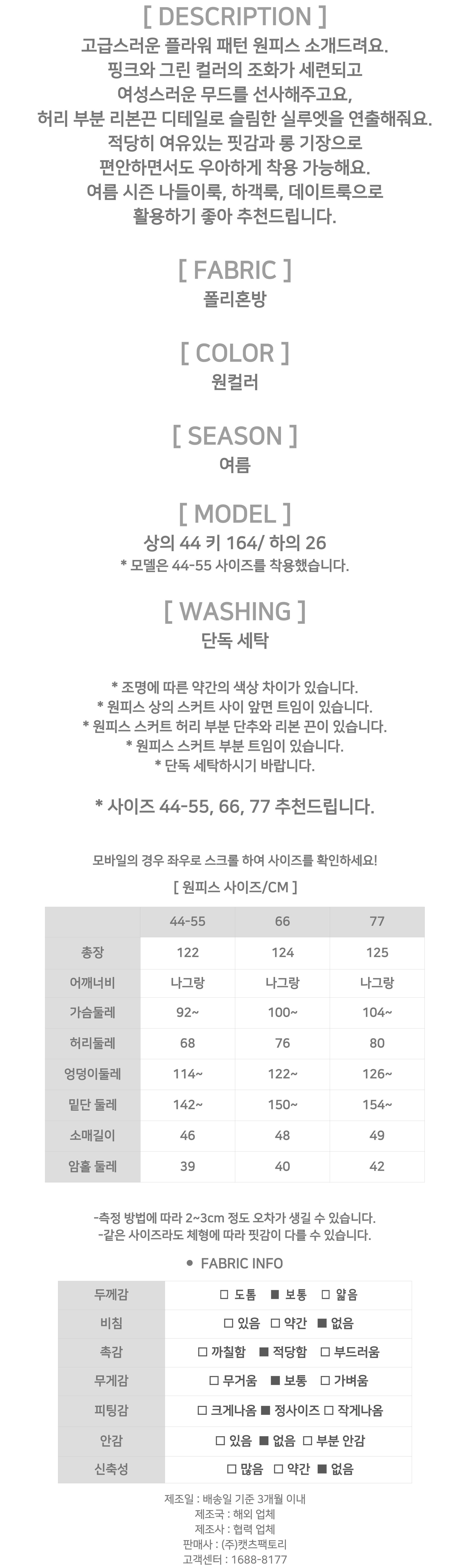 ◈[당일발송] 핑크&그린 패턴 서머 드레스