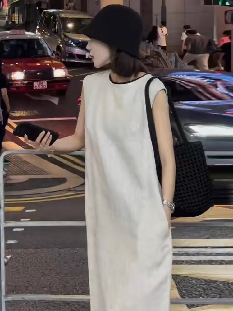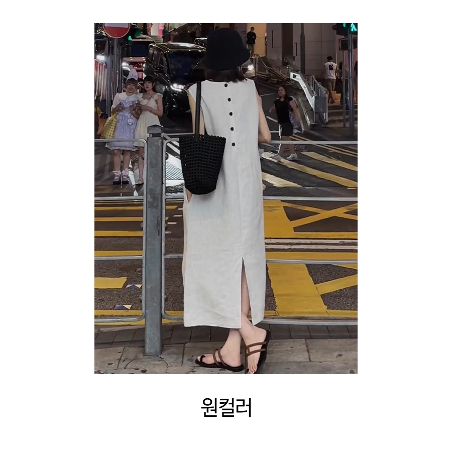 뒷버튼 심플 민소매 롱 원피스