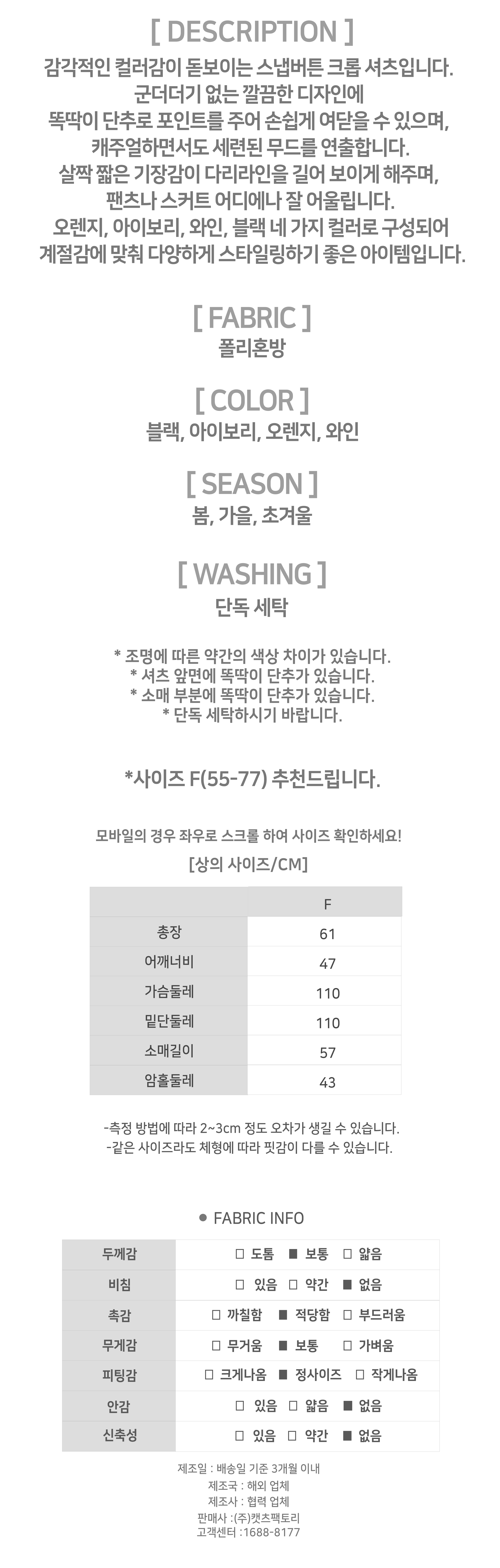 180315 ◈[당일발송] 스냅버튼 크롭 셔츠 28180
