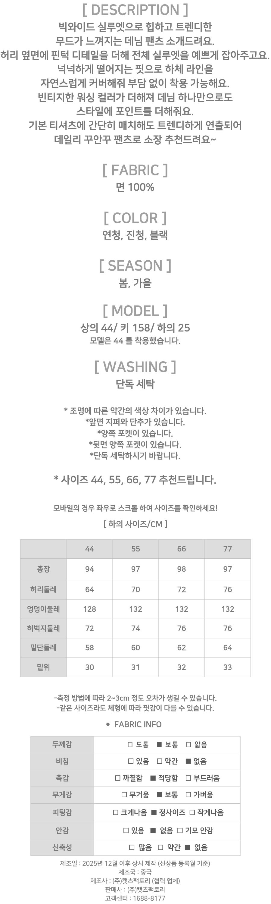 181916 옆핀턱 빅와이드 데님 팬츠 39980