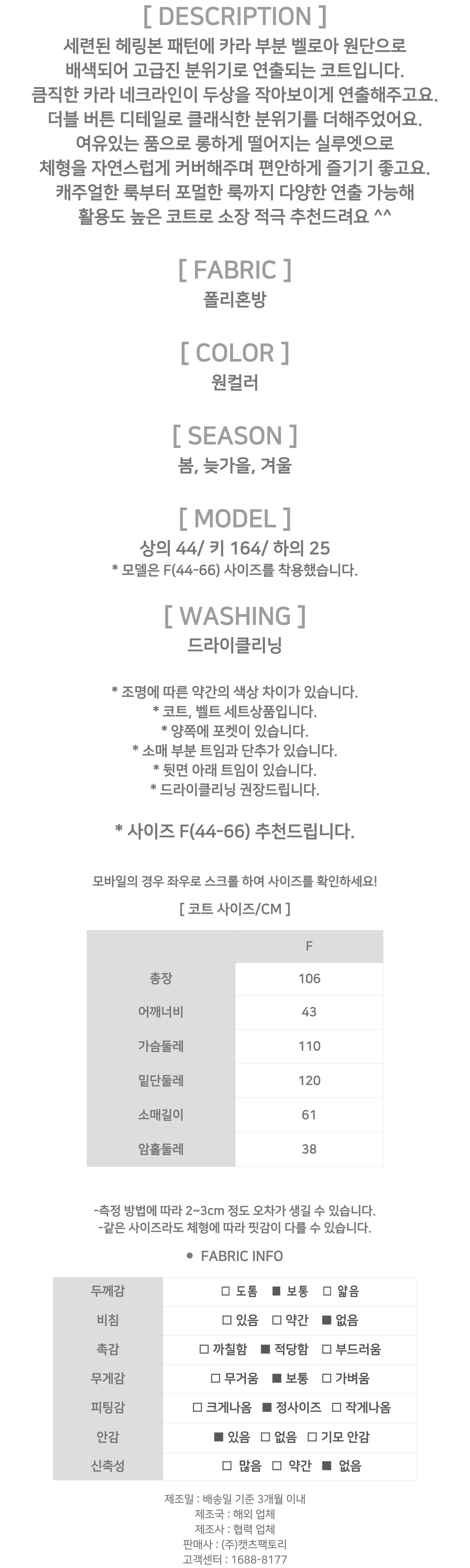 175853 ★토요특가 자정마감 50%★벨로아 카라 헤링본 롱 코트 91980