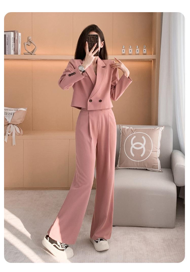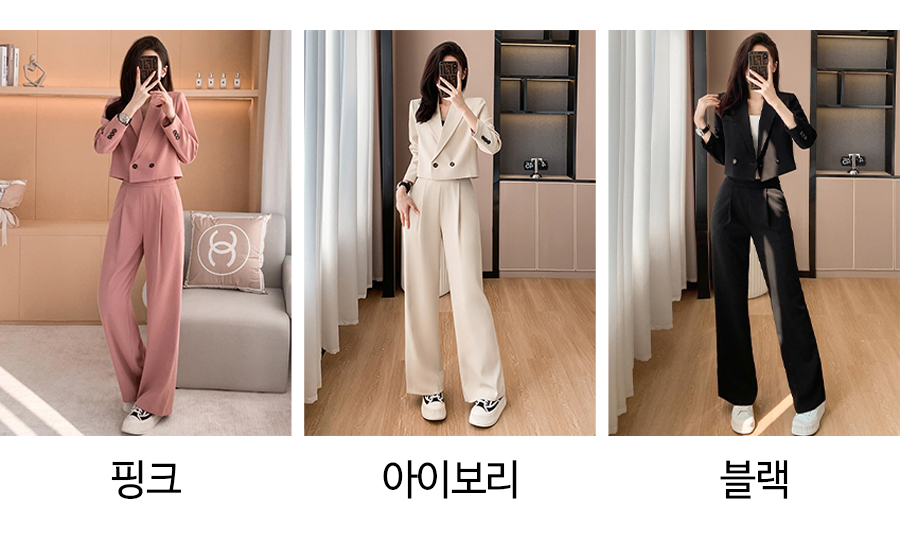 177002 투버튼 크롭 자켓&세미와이드 핀턱 슬랙스 2SET 40780