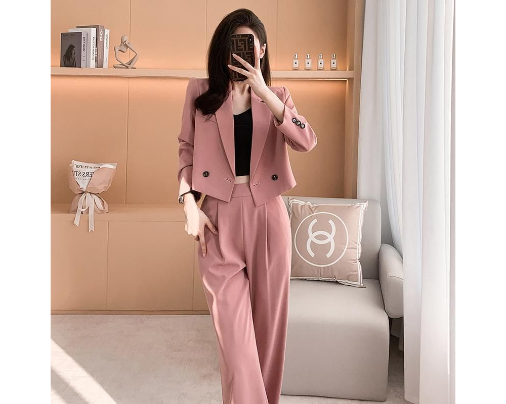 투버튼 크롭 자켓&세미와이드 핀턱 슬랙스 2SET
