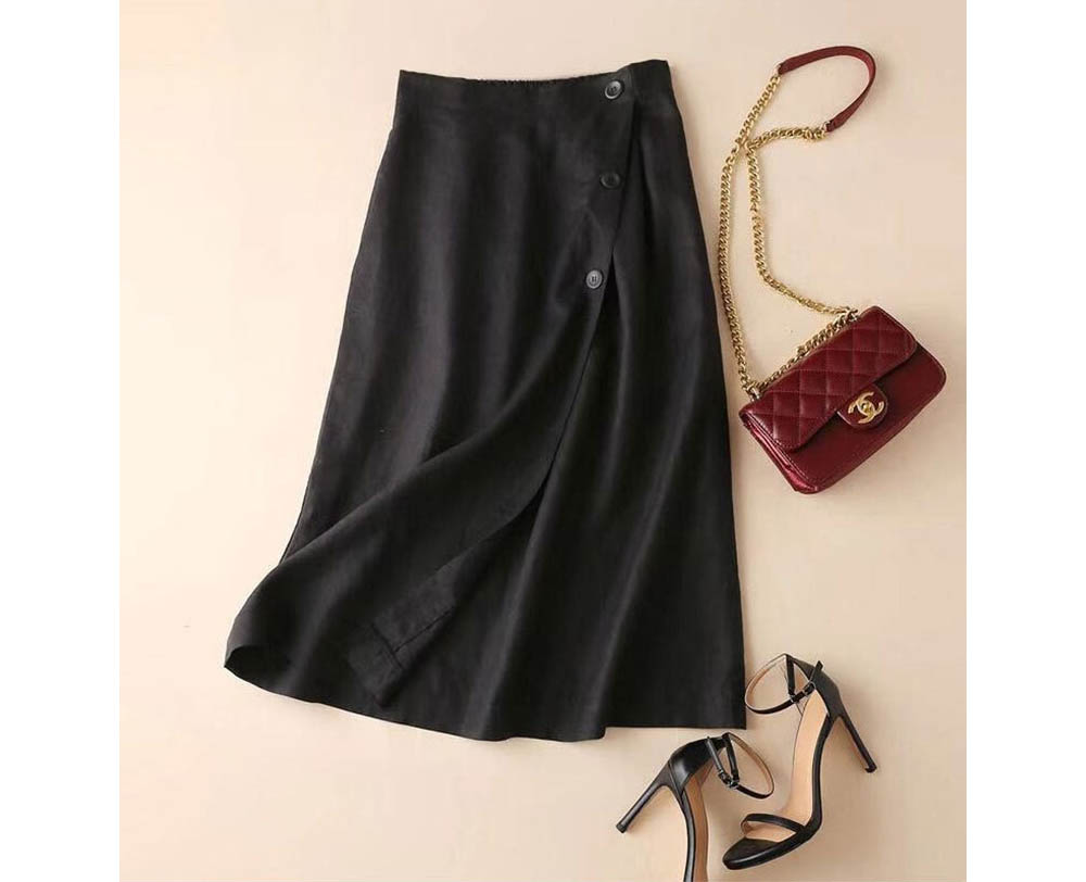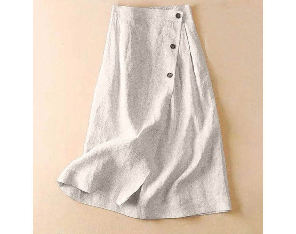 ◈[당일발송] 린넨 감성 뒷밴딩 버튼 랩 스커트