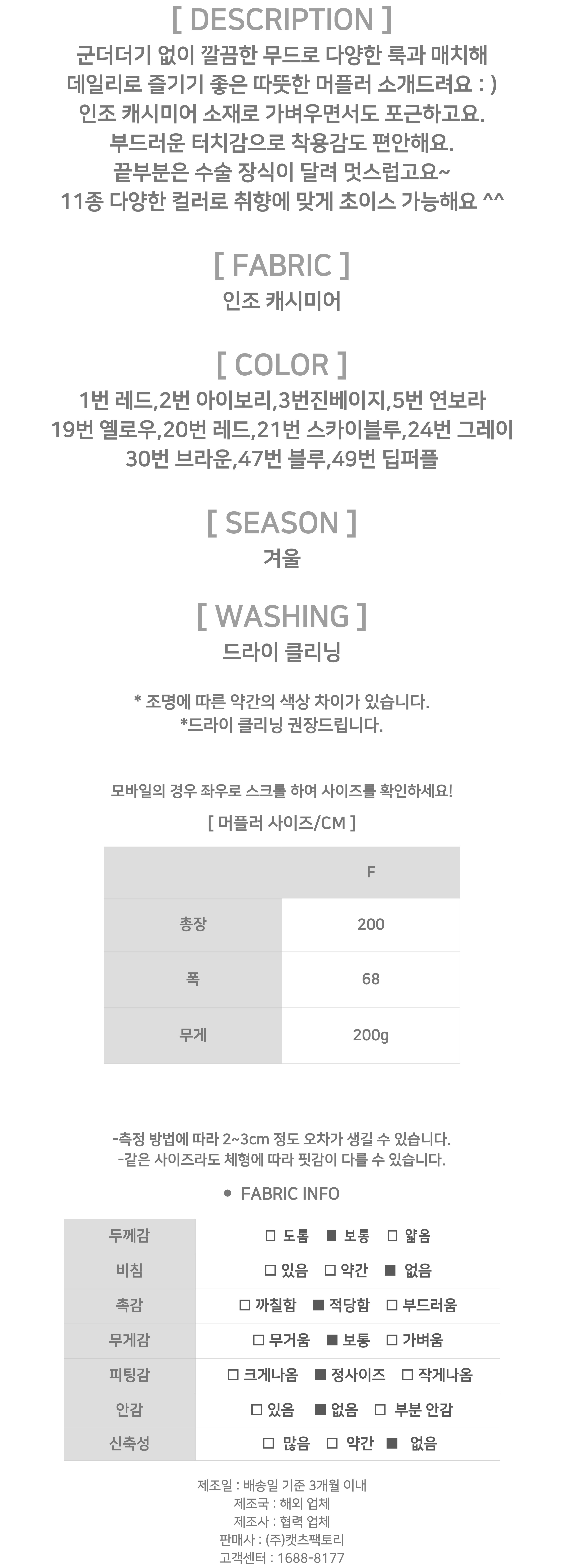 176222 ◈[당일발송] 인조 캐시미어 데일리 머플러 19990