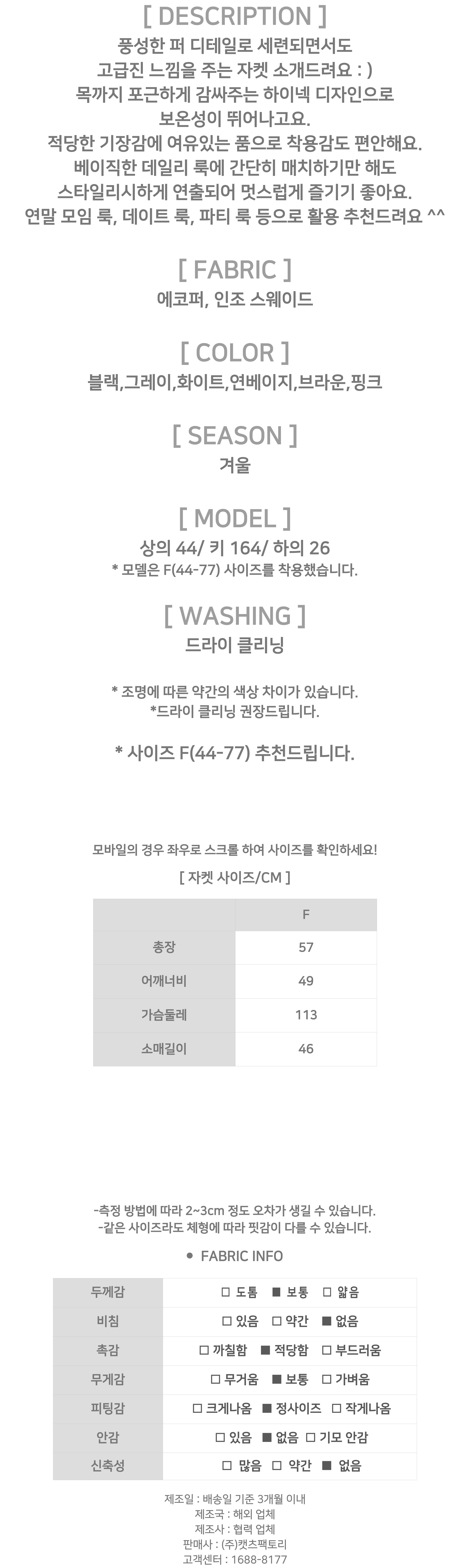 176420 [당일발송] ★토요특가 자정마감50%★하이넥 에코퍼 코트 자켓 71990