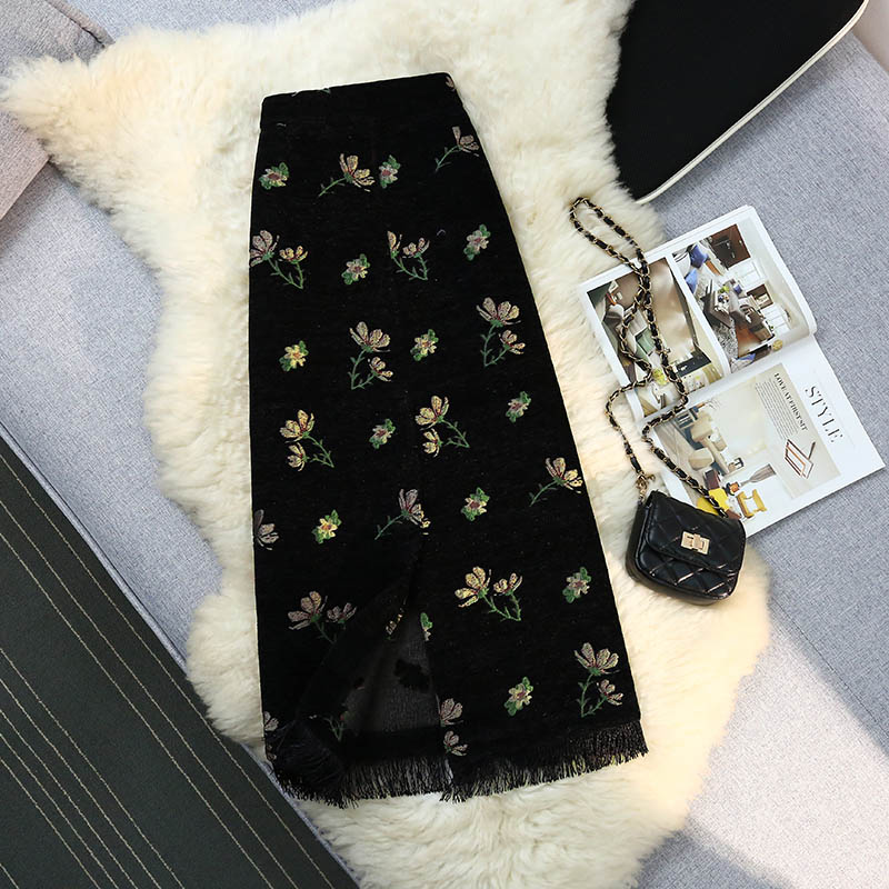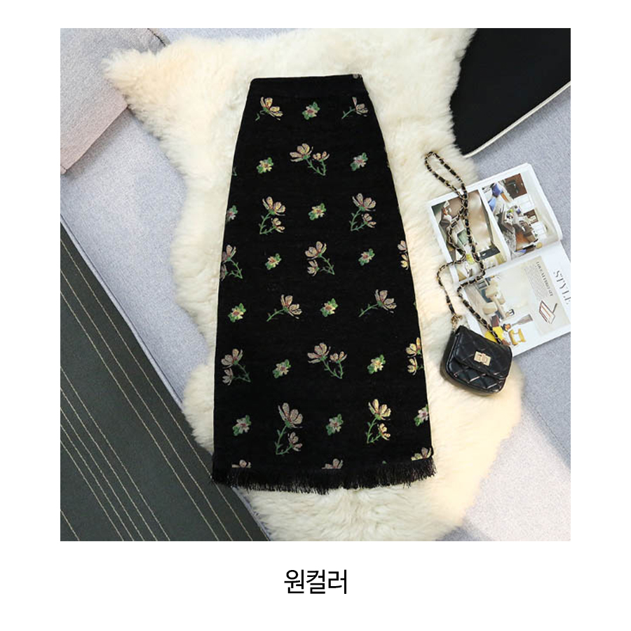 ◈[당일발송] 플라워 니트 프린지 롱 스커트