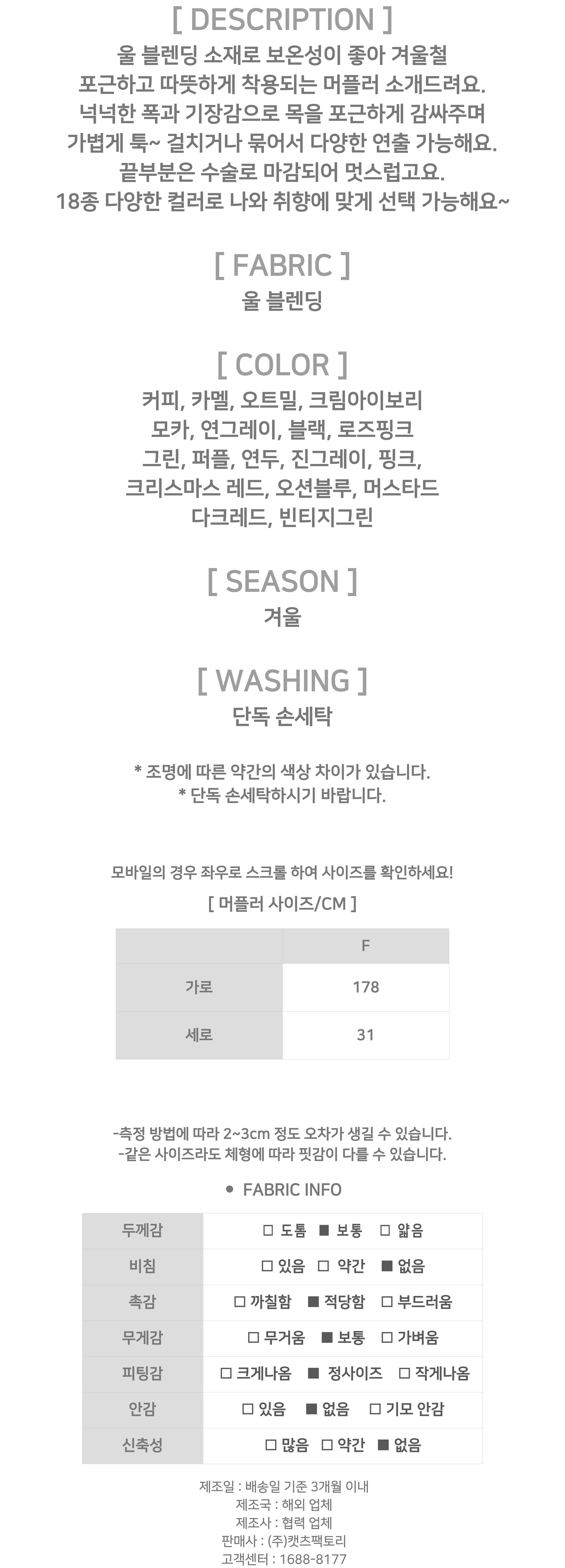 - 상품의 색상은 사용하시는 모니터 사양에 따라 실제 색상과 다소 차이가 있을 수 있으며, 이는 불량의 사유가 되지 않습니다.
