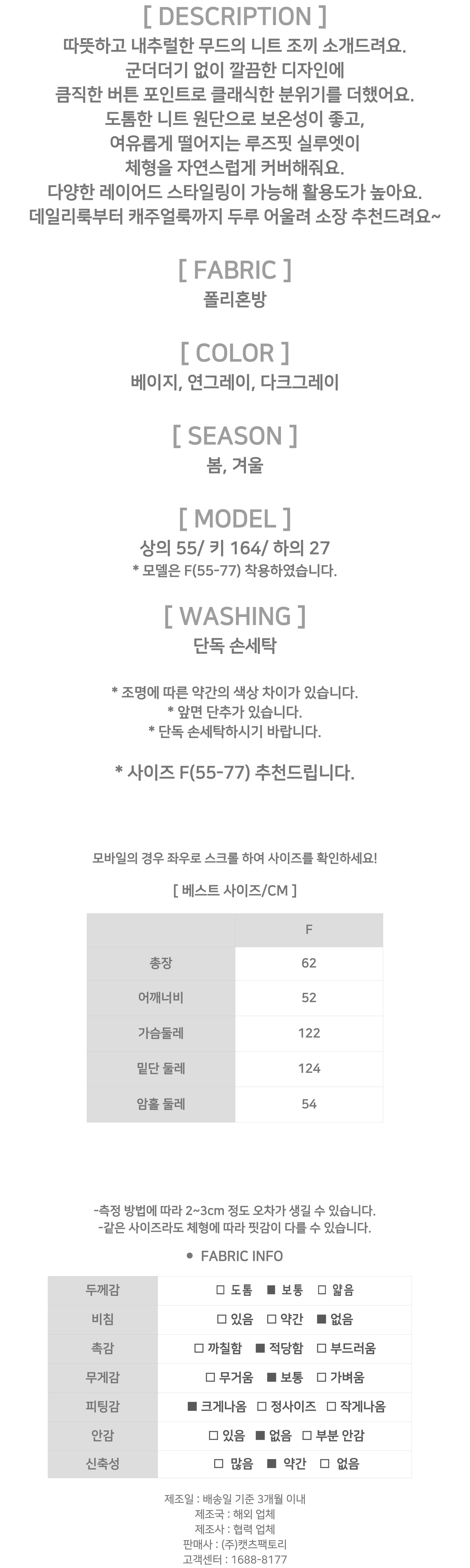 180597 클래식 버튼 루즈핏 니트 조끼 25880