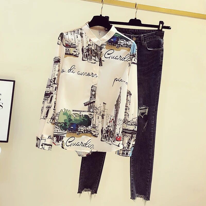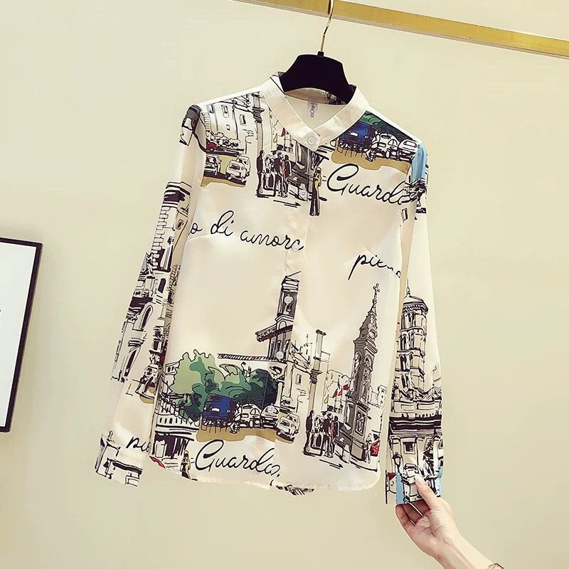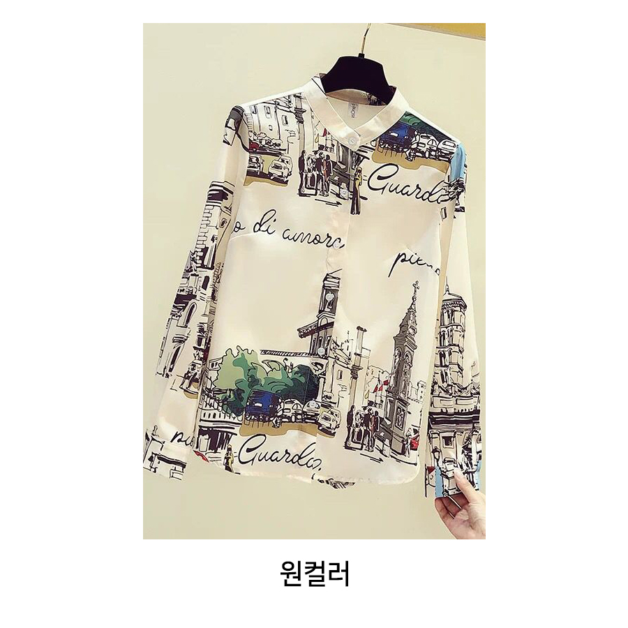 180066 ◈[당일발송] 일러스트 프린팅 셔츠 블라우스 18880