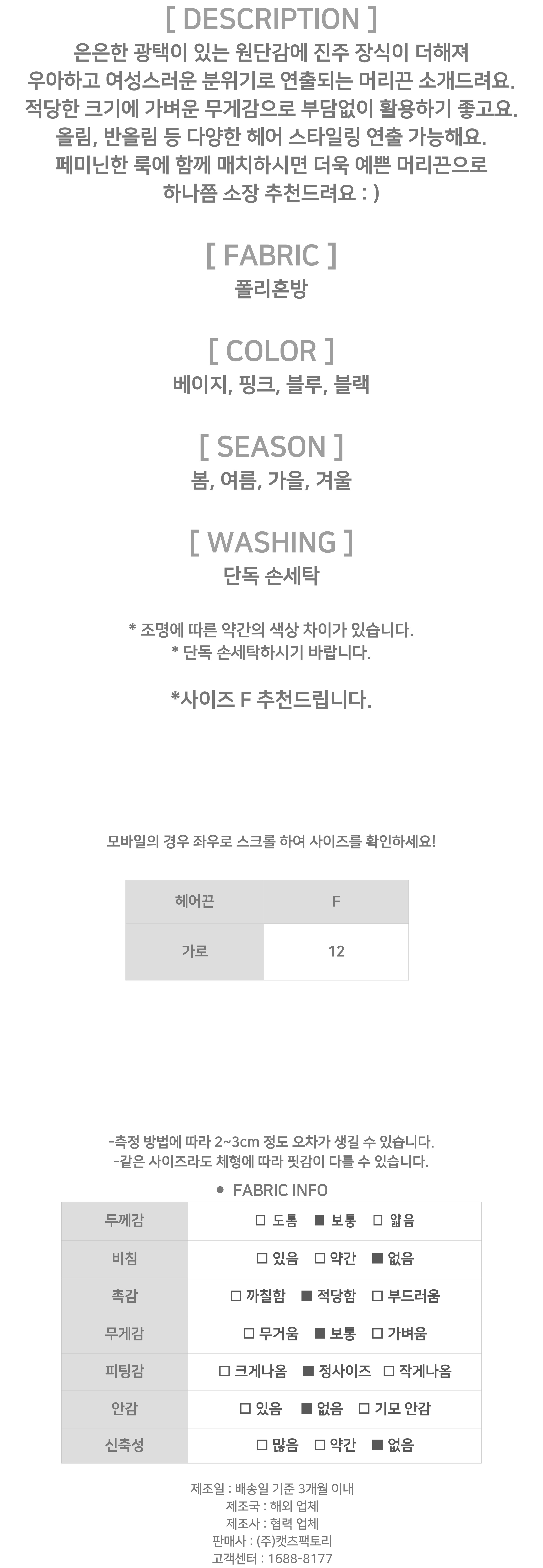 - 상품의 색상은 사용하시는 모니터 사양에 따라 실제 색상과 다소 차이가 있을 수 있으며, 이는 불량의 사유가 되지 않습니다.