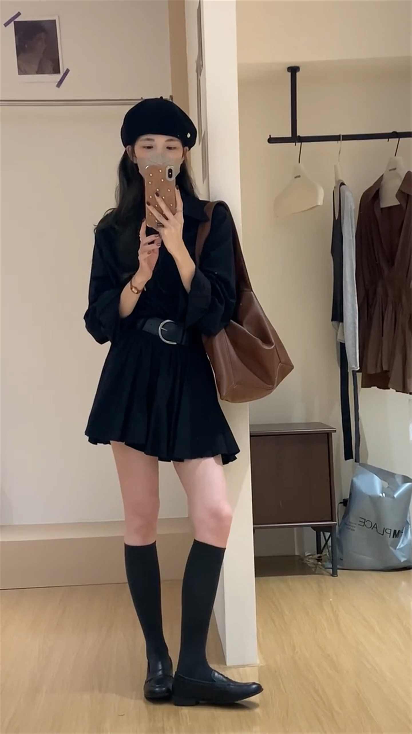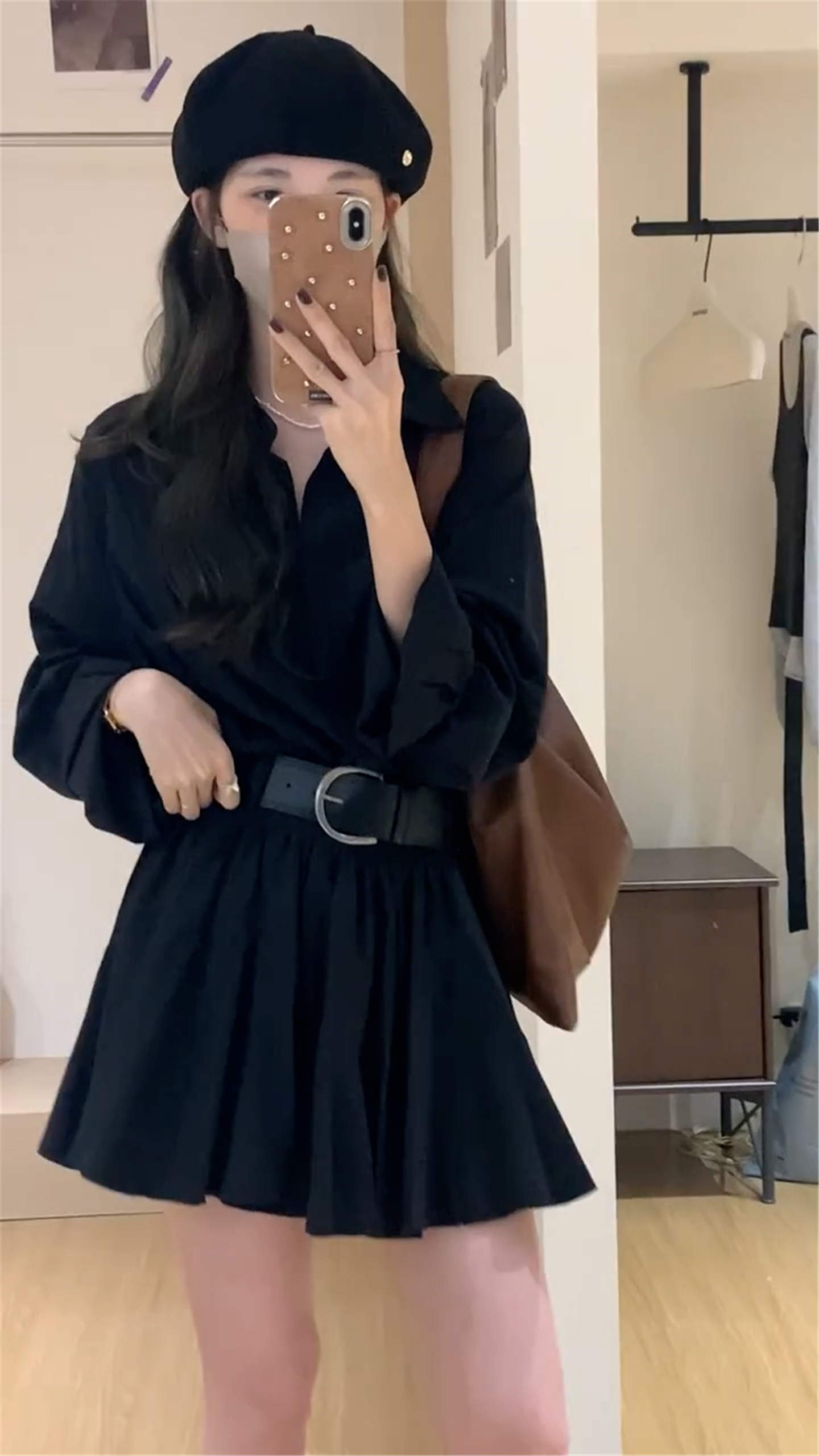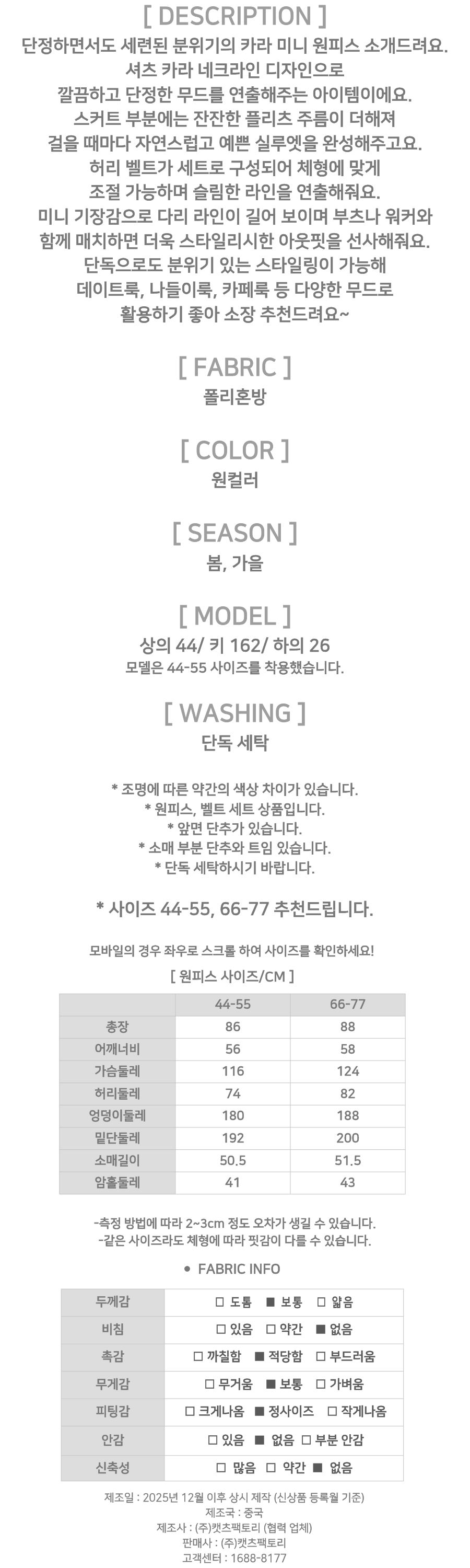 182241 벨트 카라 플리츠 미니 원피스 39980