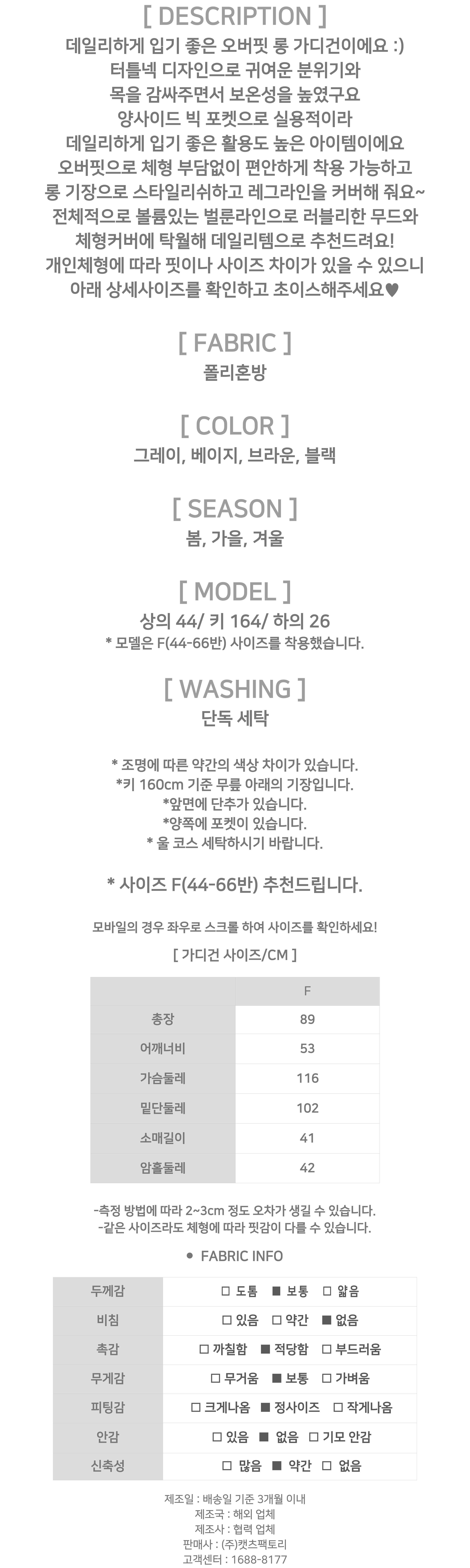 165800 터틀넥 벌룬 오버핏 롱 가디건 39990